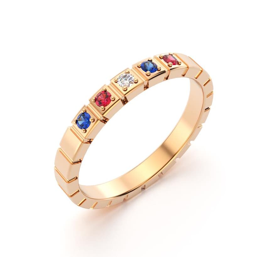 Bague New York en Or Rose avec Rubis, Saphirs bleus et Diamant