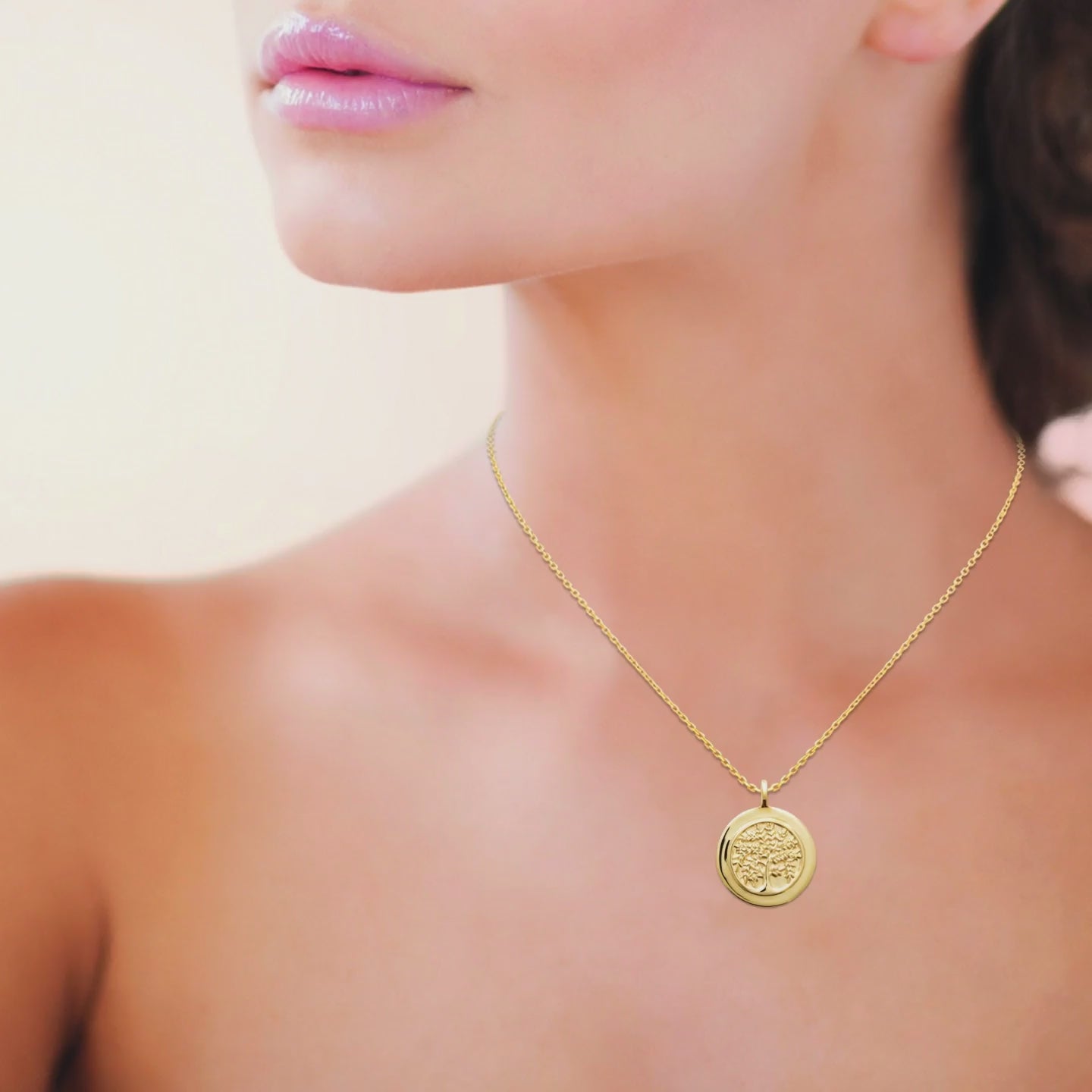 Symbole intemporel de croissance et d’équilibre, le pendentif Arbre de Vie rond en plaqué or 18 carats incarne la force tranquille et la sérénité.