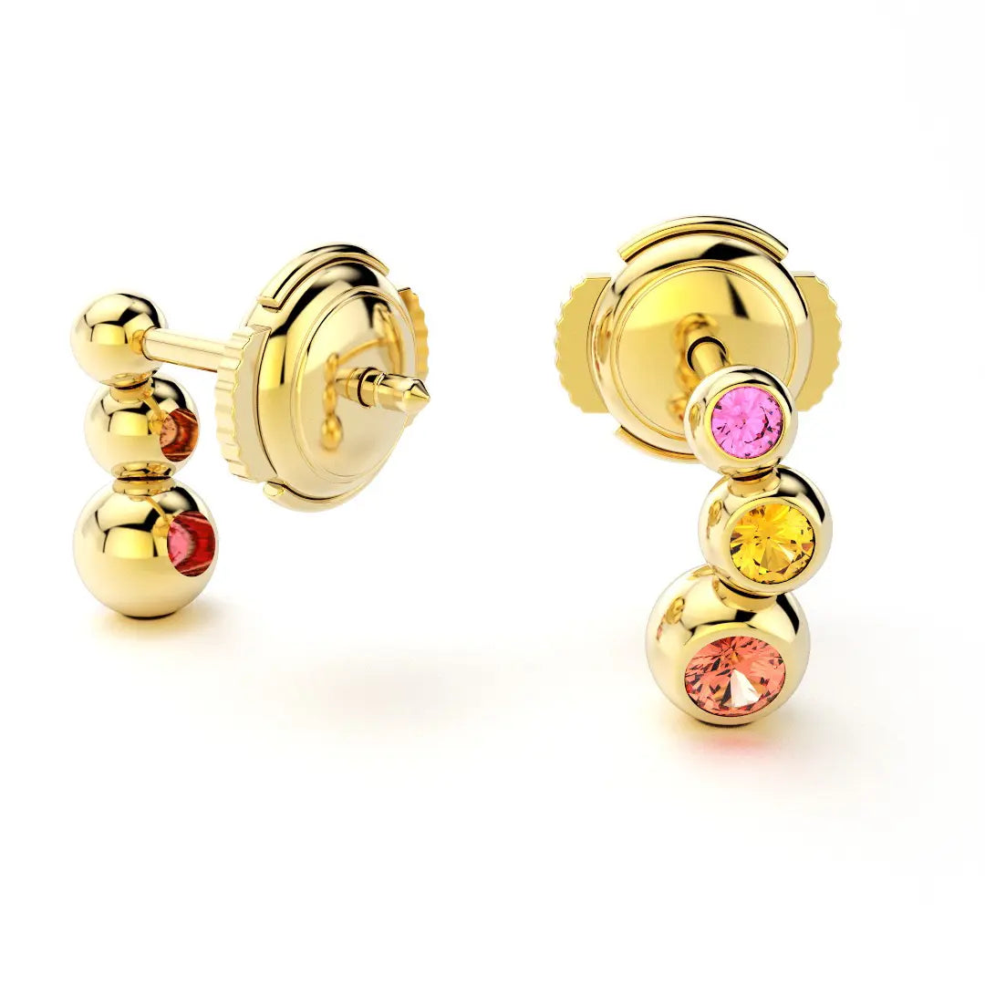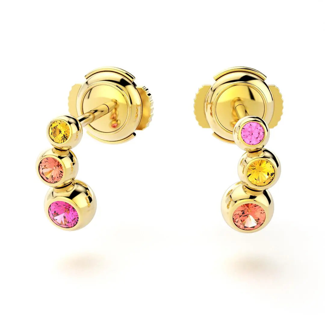 Boucles d'oreilles Volga Or Jaune 18 carats | Saphirs jaunes, roses et pêche