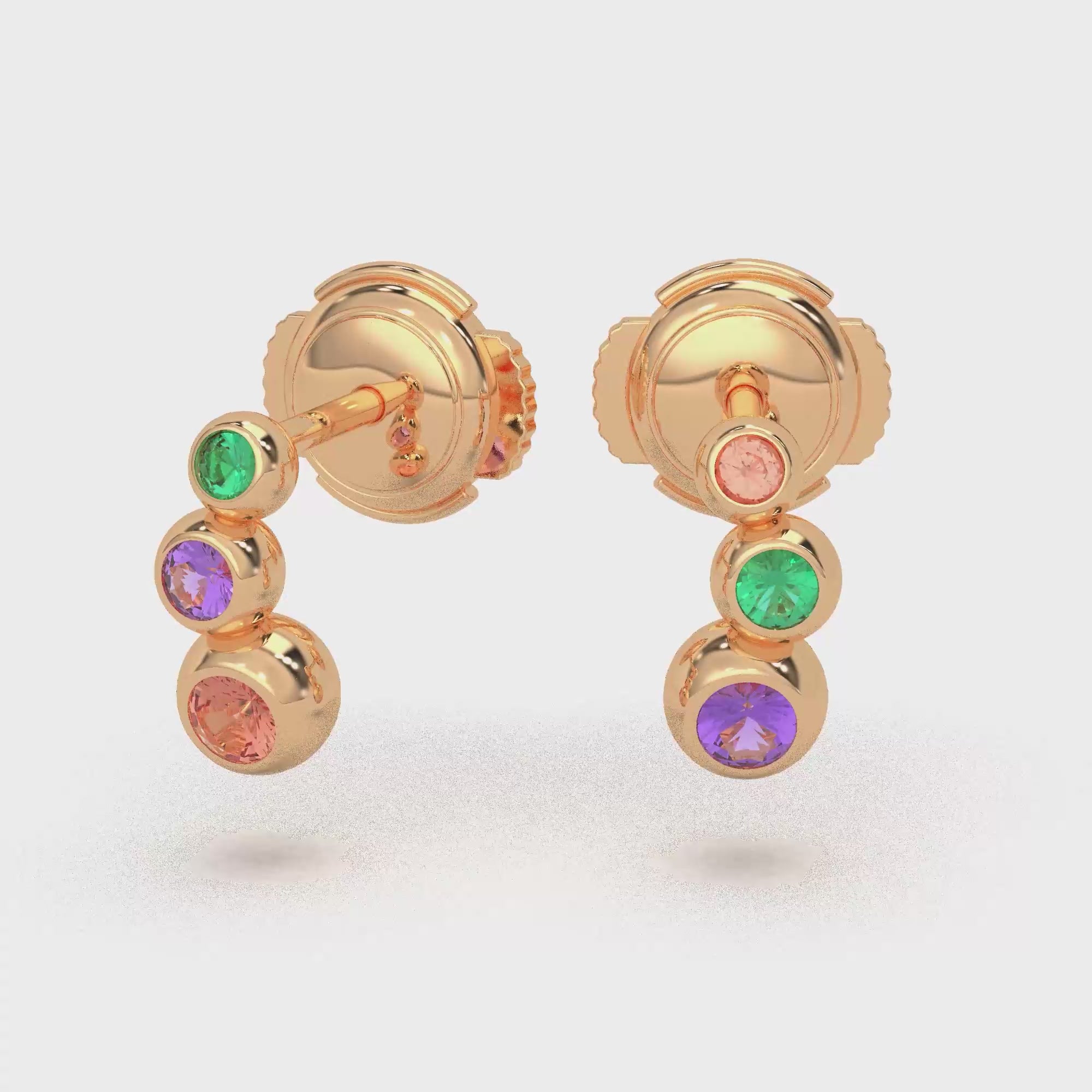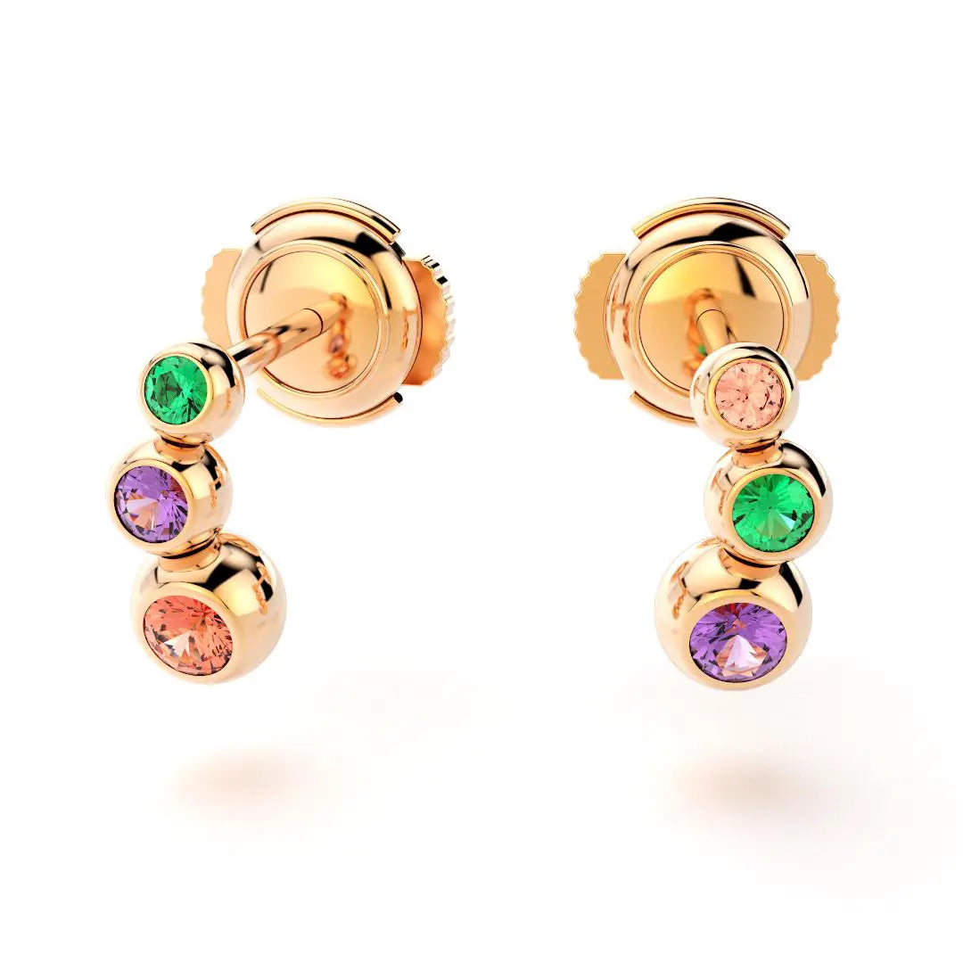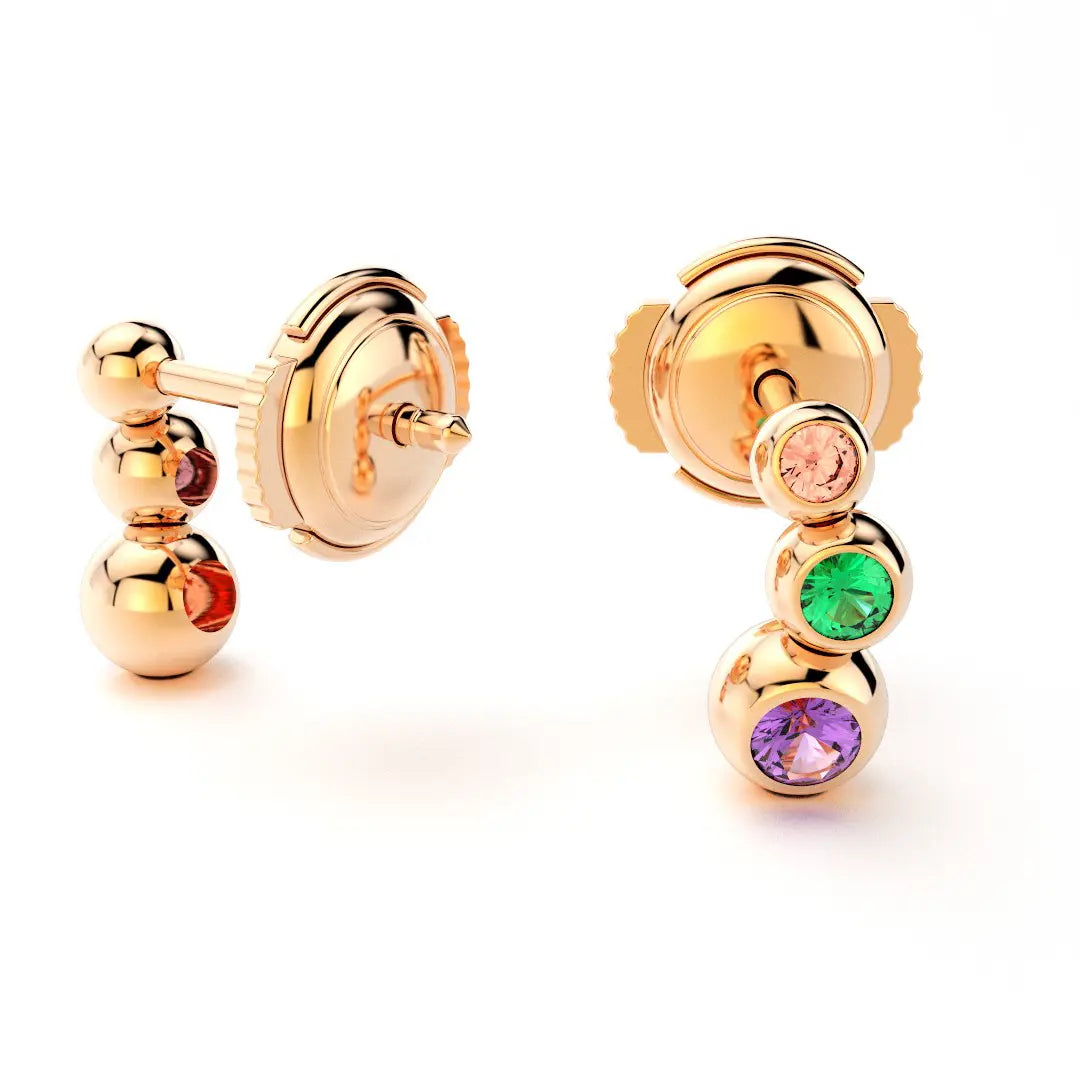 Boucles d'oreilles Volga Or Rose 18 carats | Saphirs violets, saphirs pêche et Émeraudes