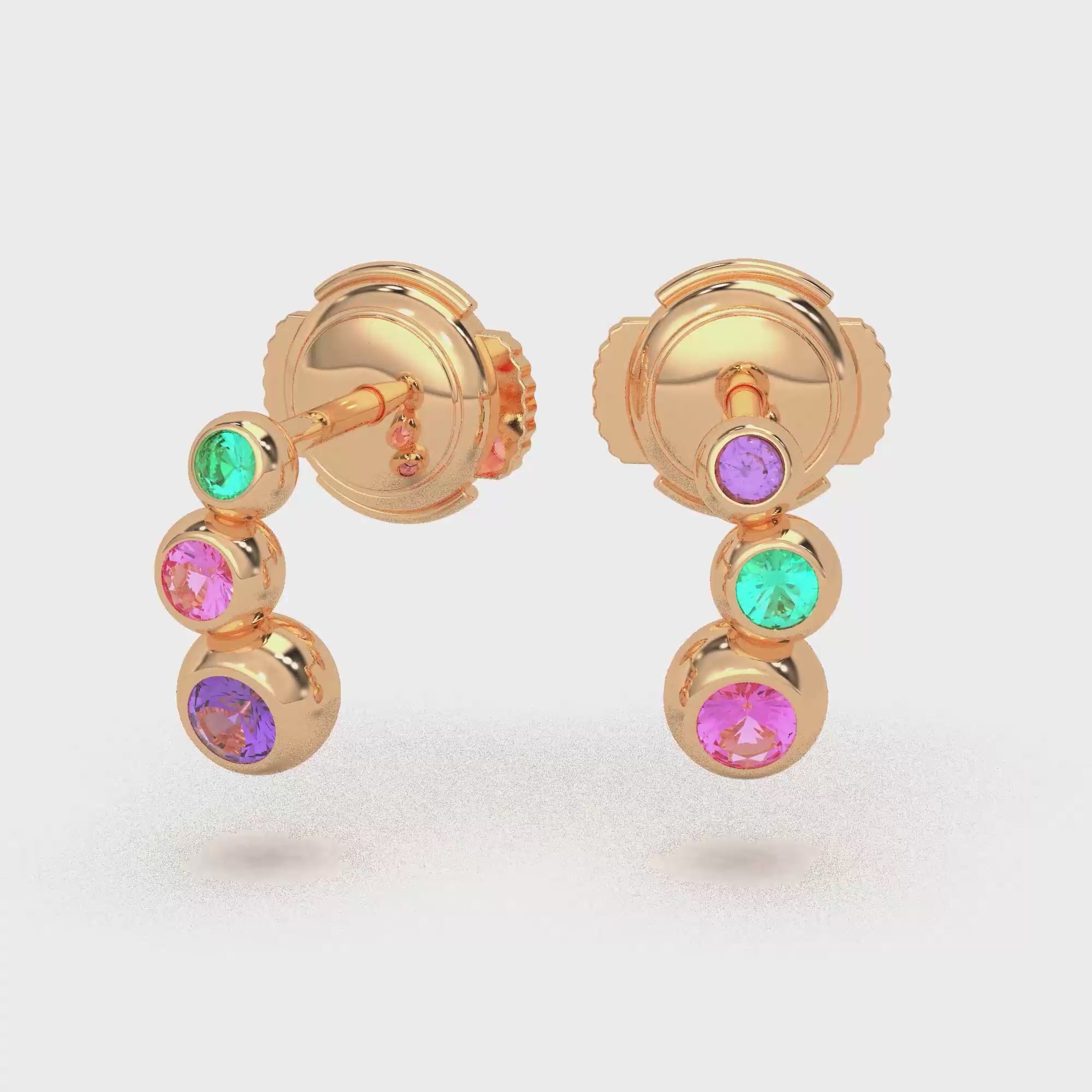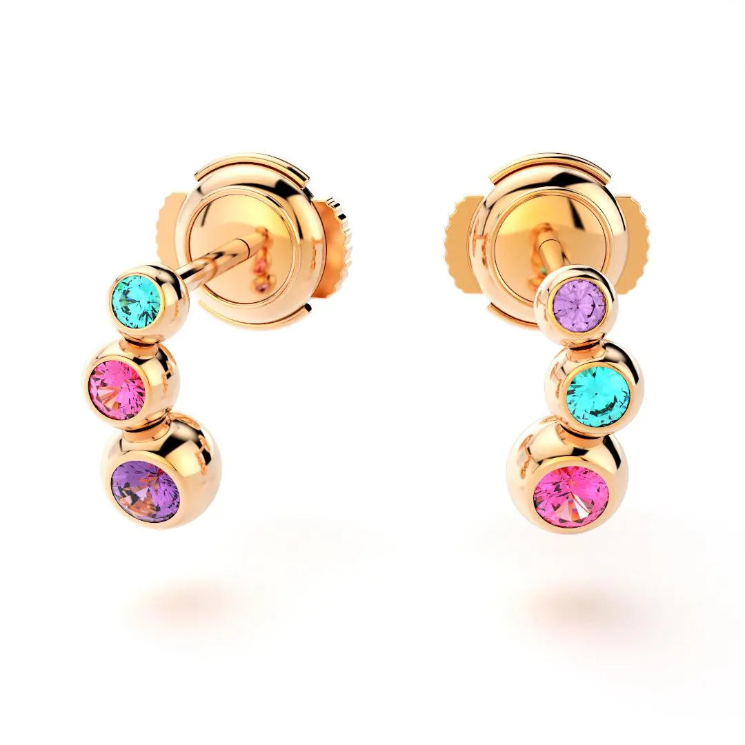 Boucles d'oreilles Volga Or Rose 18 carats | Saphirs violets, saphirs roses et Tourmalines paraiba