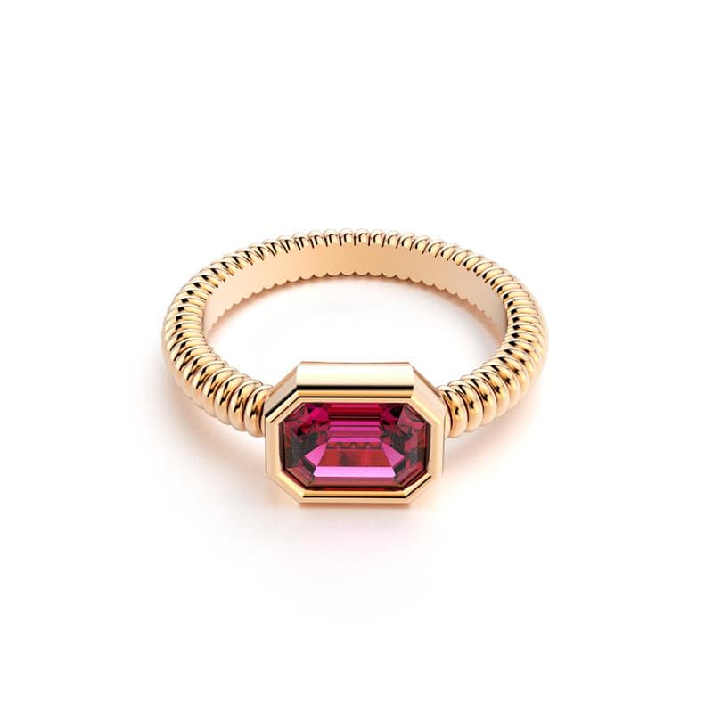 Bague Byzance Or Rose avec pierre semi-précieuse taille baguette