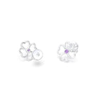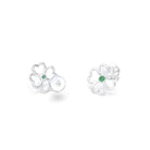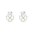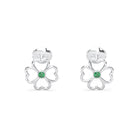 Boucles d'oreilles Trèfle Or Blanc 18 Carats & Pierre Centrale