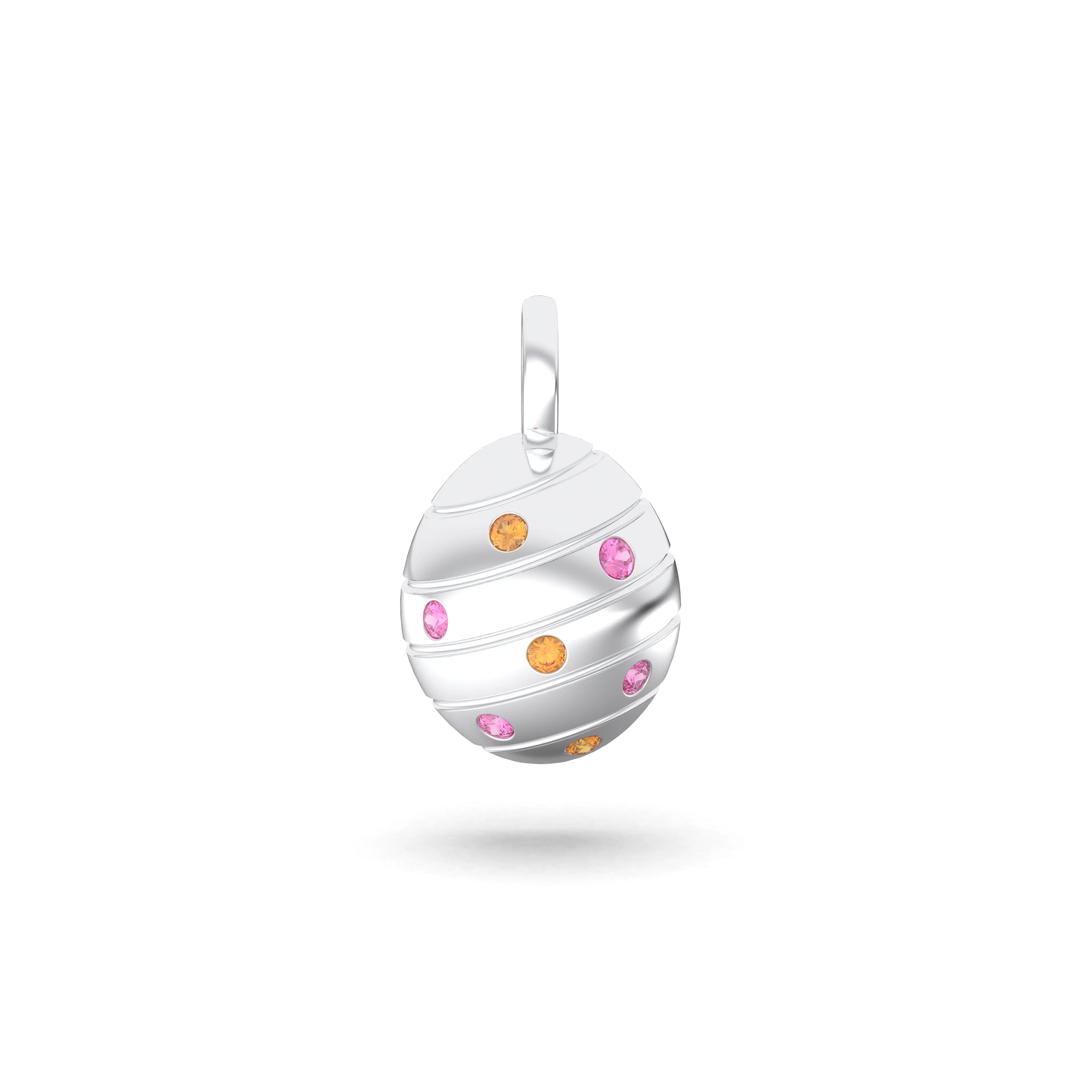 Sur ce pendentif ovoïde de 12 mm, la surface polie miroir agit comme une toile vierge, prête à accueillir la couleur. 7 pierres précieuses de 1,7 mm y sont serties avec la précision de la haute joaillerie. L’architecture du bijou repose sur un équilibre subtil : 4 pierres d’une variété dominante enlacent 3 pierres d’une nuance complémentaire (sauf pour la version Diamant intégral), créant un rythme visuel unique.