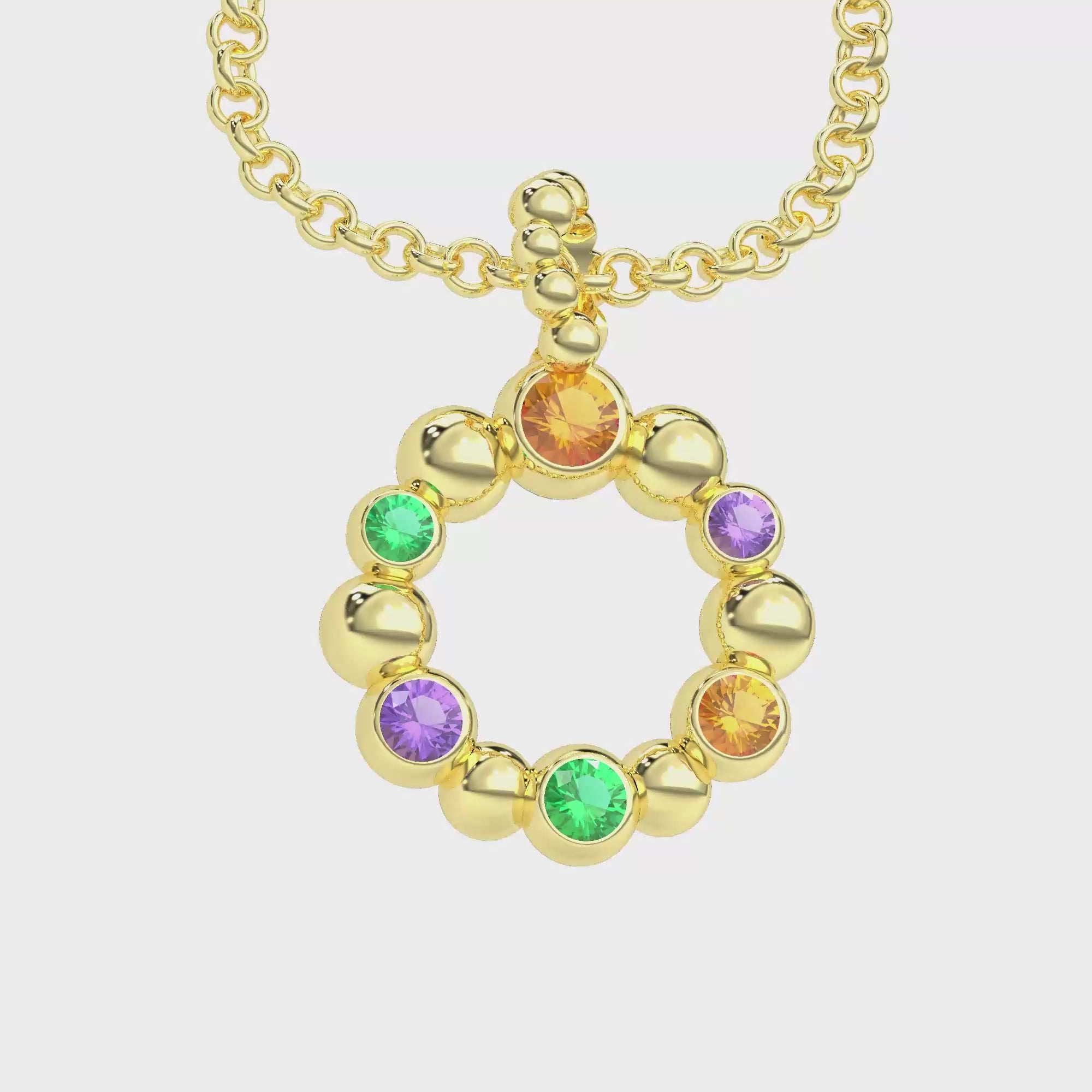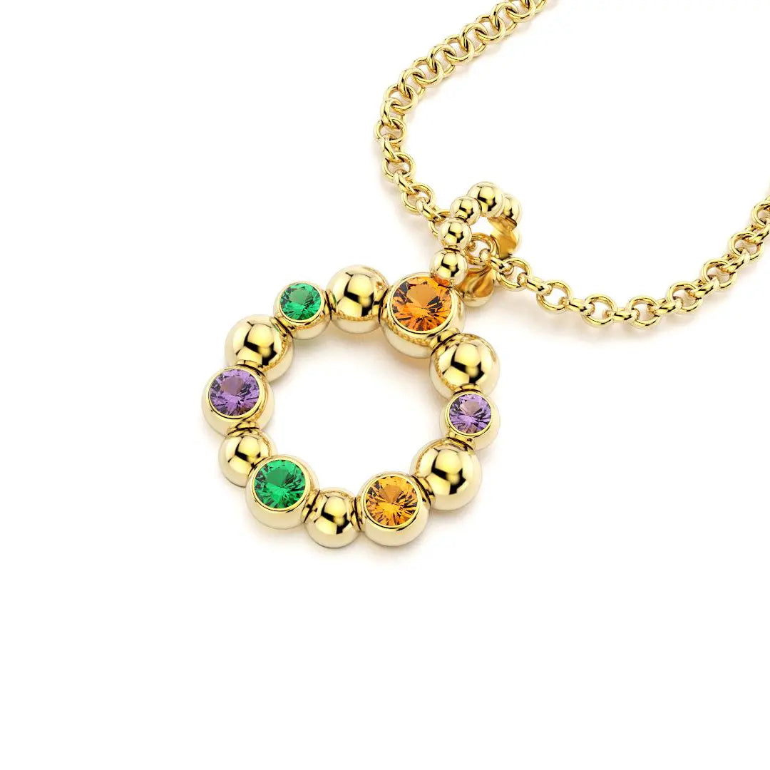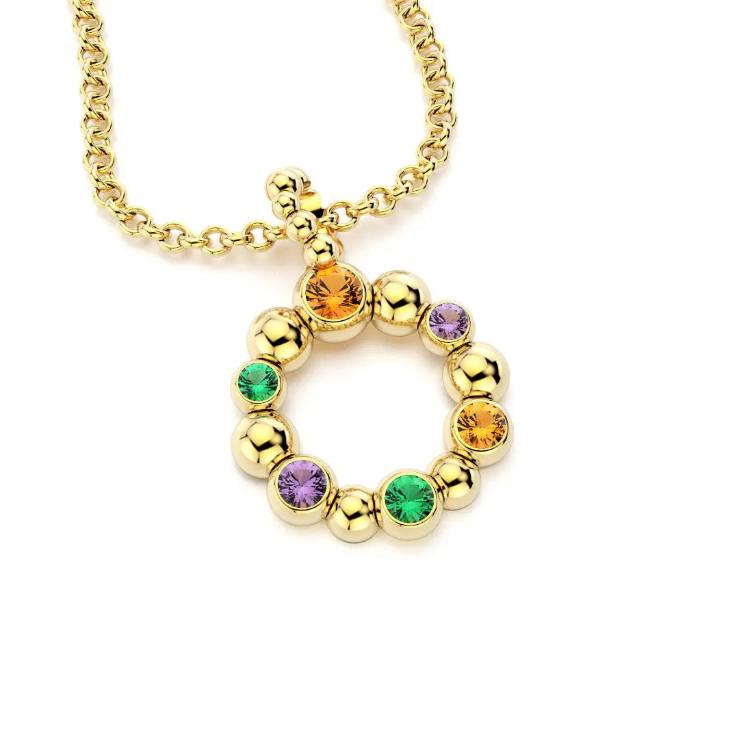 Collier Volga Or jaune 18 Carats - Grenats mandarins, Saphirs violets et Émeraudes