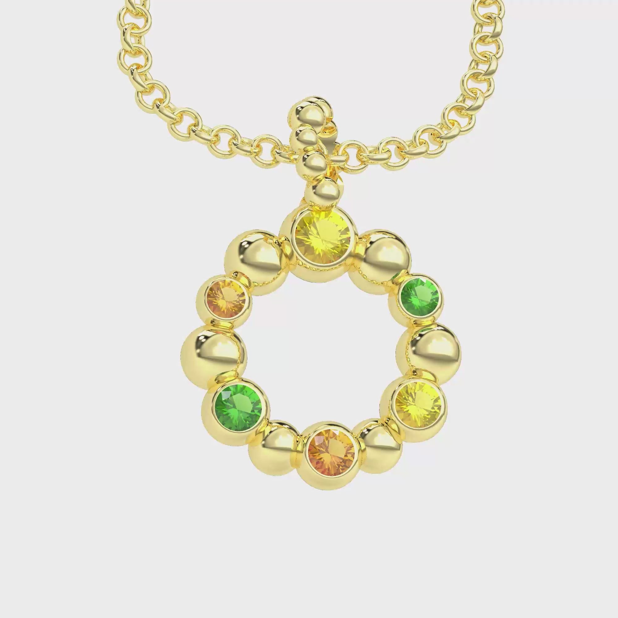 Collier Volga Or jaune 18 Carats - Saphirs jaunes, Émeraudes et Grenats mandarins
