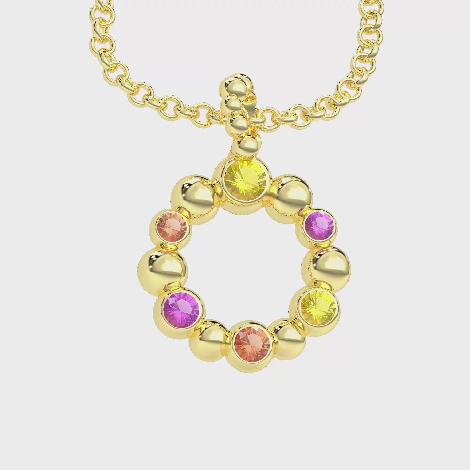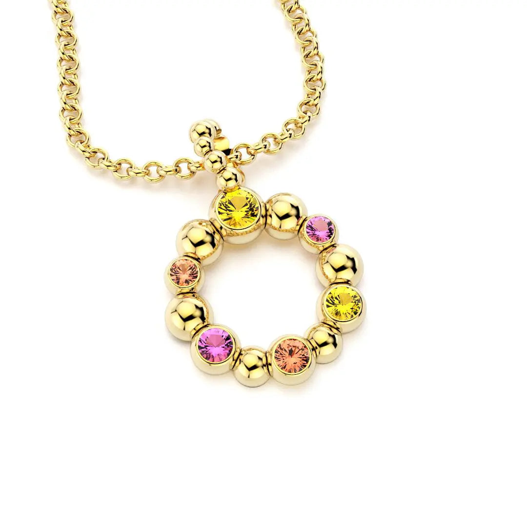 Collier Volga Or jaune 18 Carats - Saphirs jaunes, Saphirs roses et Saphirs pêche