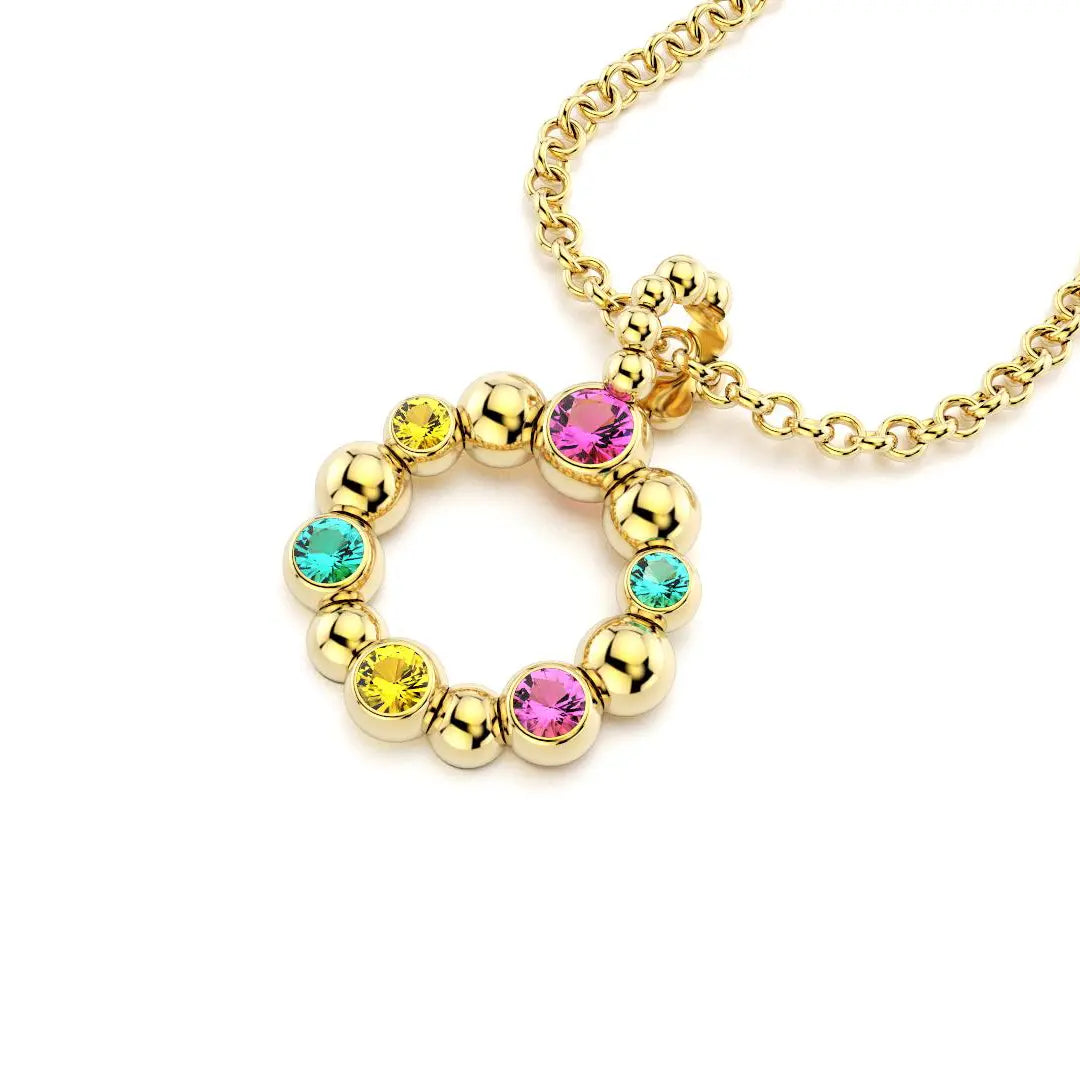 Collier Volga Or jaune 18 Carats - Saphirs jaunes, Saphirs roses et Tourmalines Paraiba