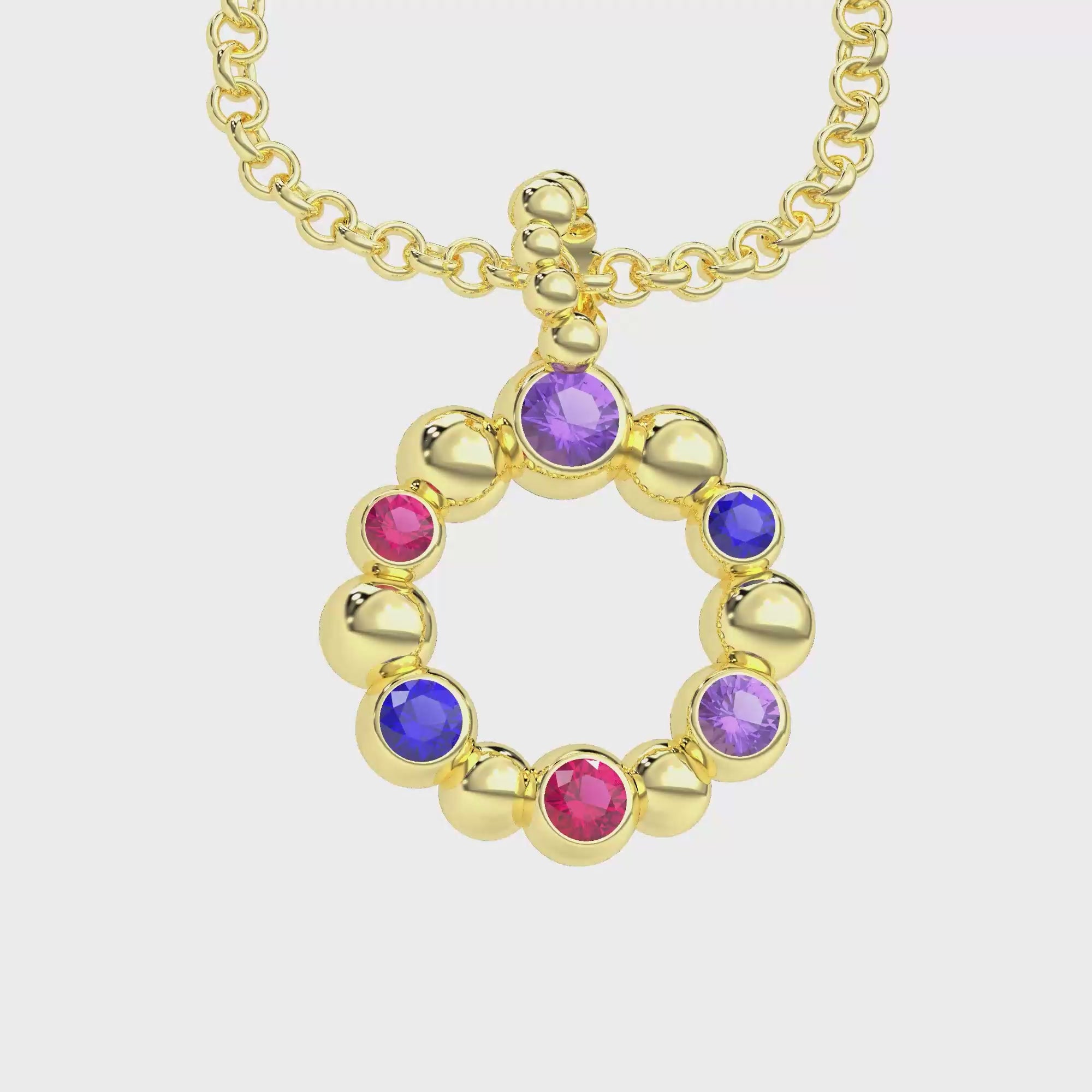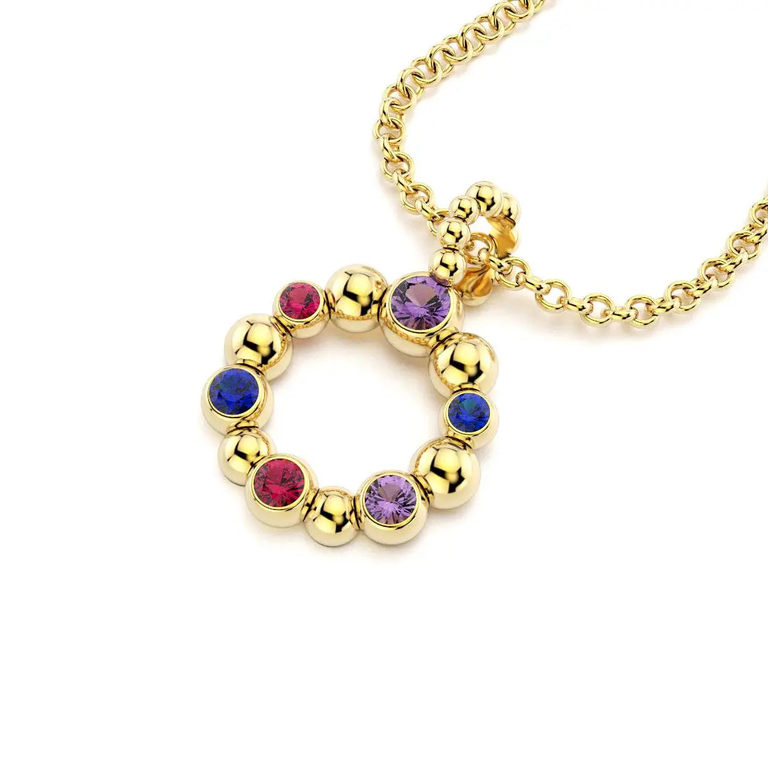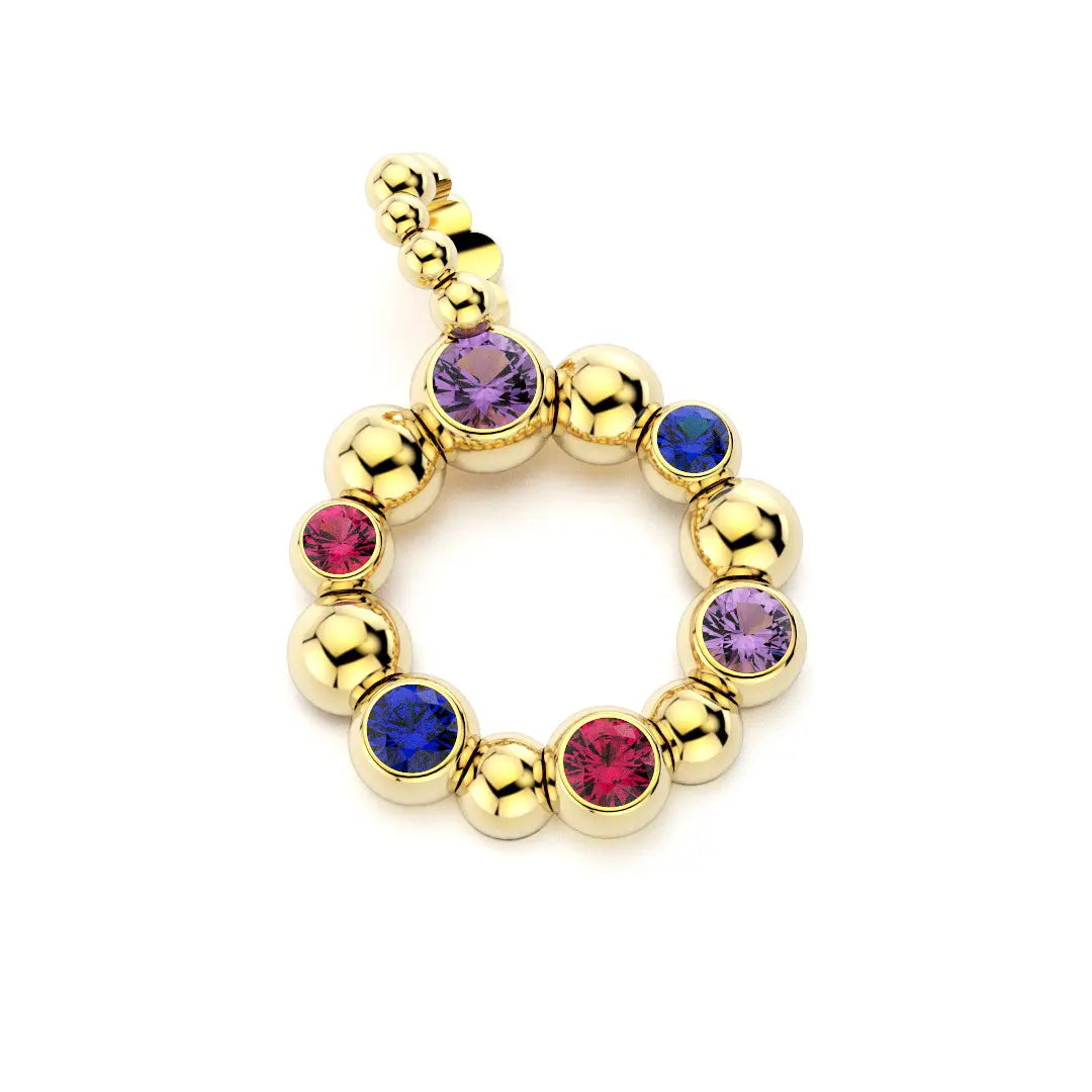 Collier Volga Or jaune 18 Carats - Saphirs violets, Saphirs bleus et Rubis