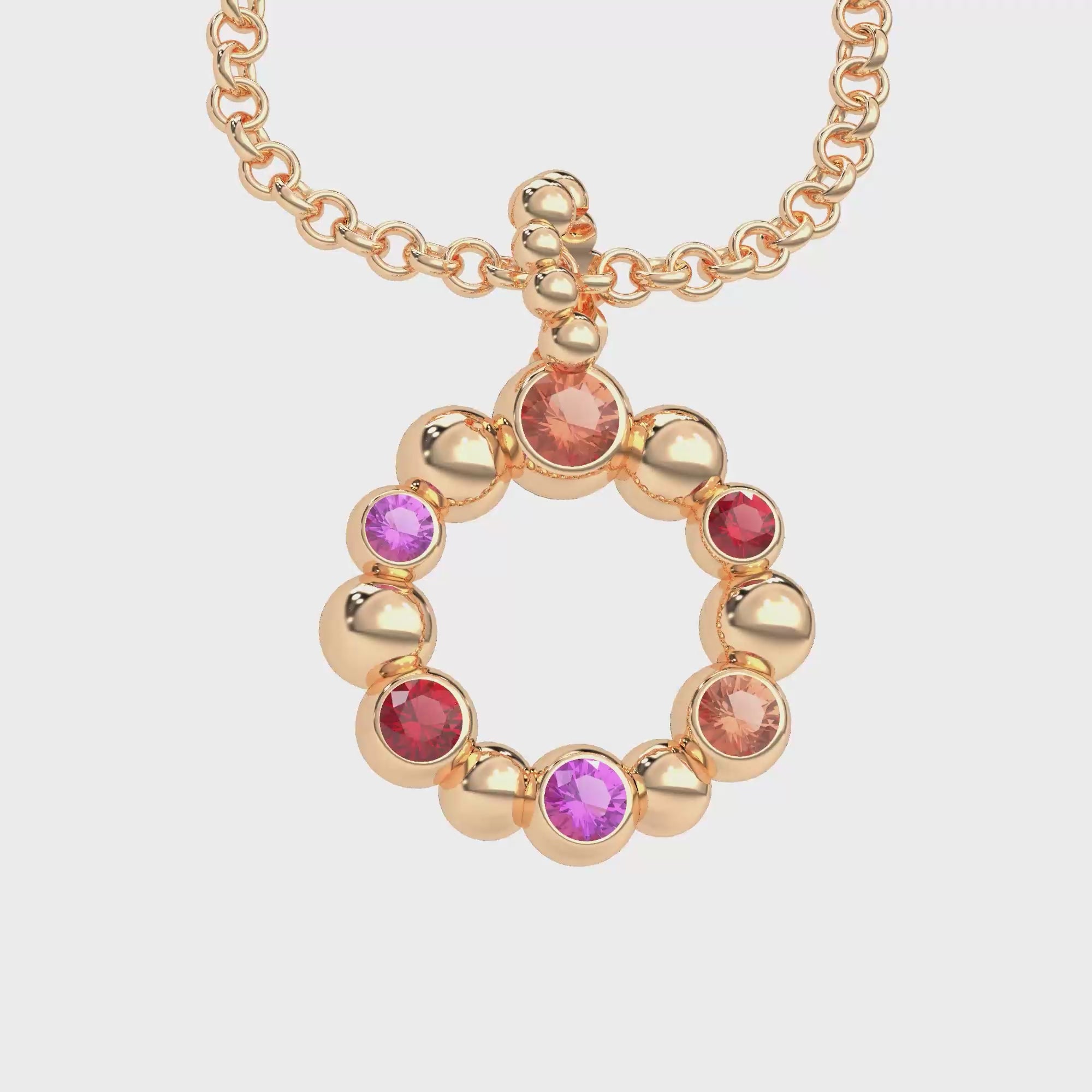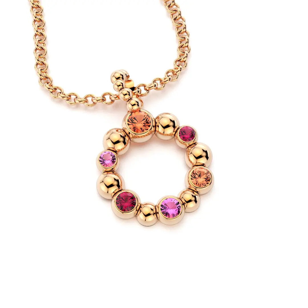 Collier Volga Or rose 18 Carats - Saphirs pêche, Saphirs roses et Rubis