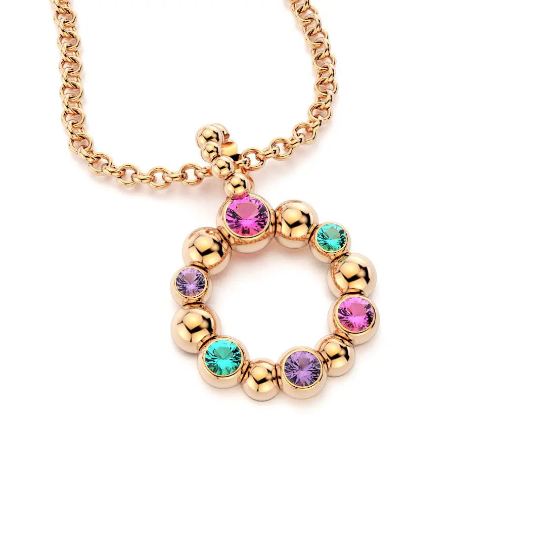 Collier Volga Or rose 18 Carats - Saphirs roses, Saphirs violets et Tourmalines paraiba