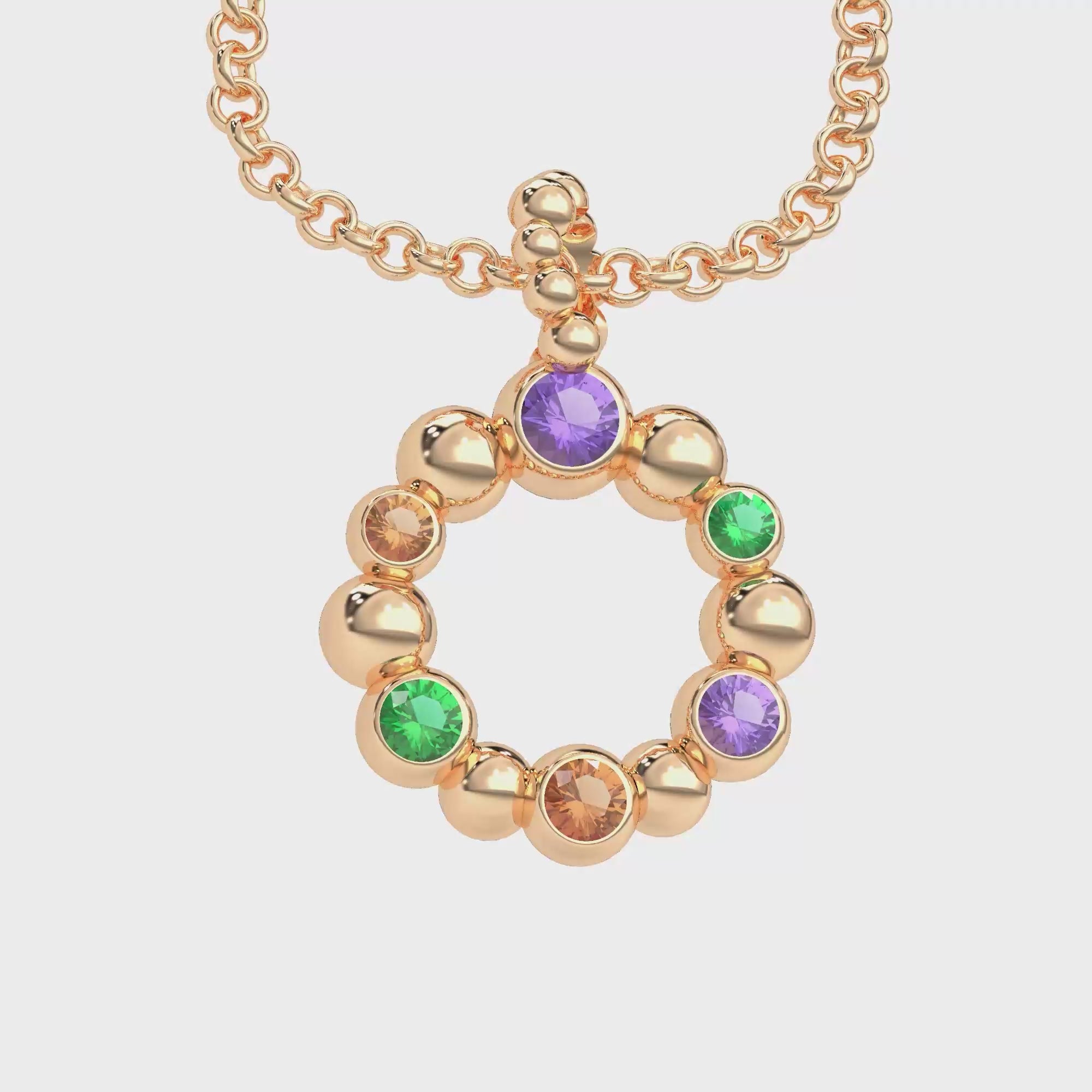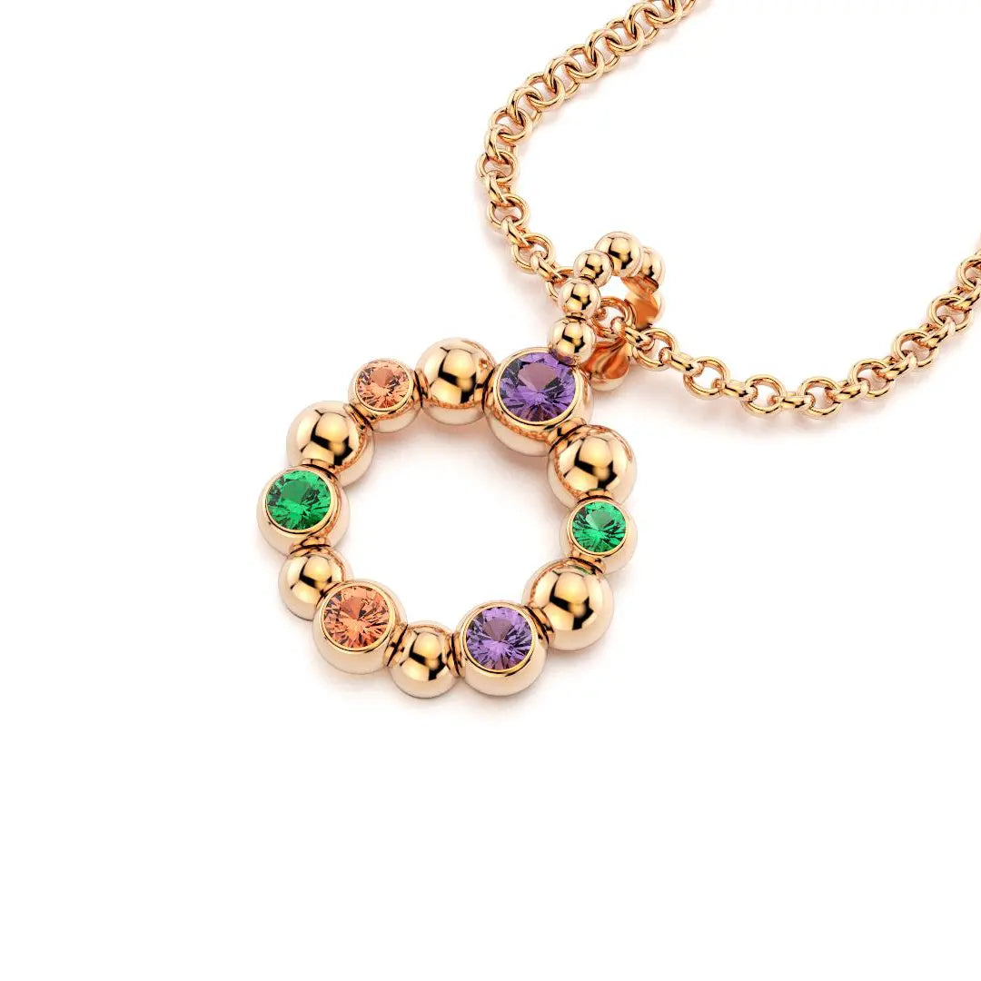 Collier Volga Or rose 18 Carats - Saphirs violets, Saphirs pêche et Émeraudes