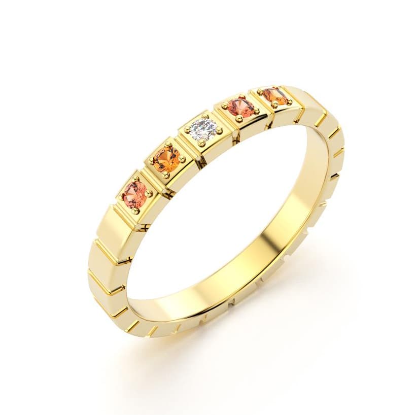 Bague New York en Or Jaune avec Grenats mandarins, Saphirs pêche et Diamant