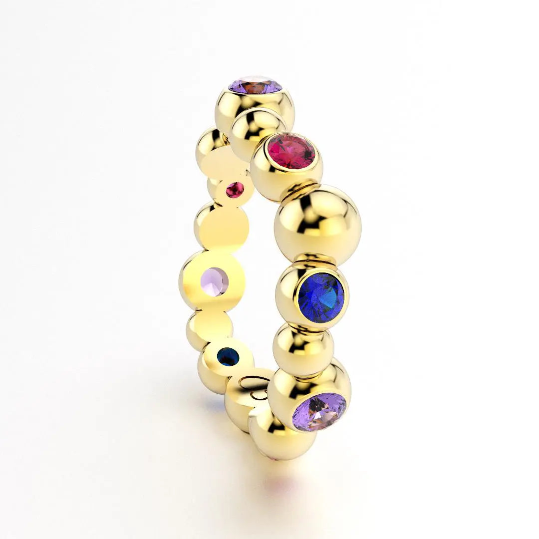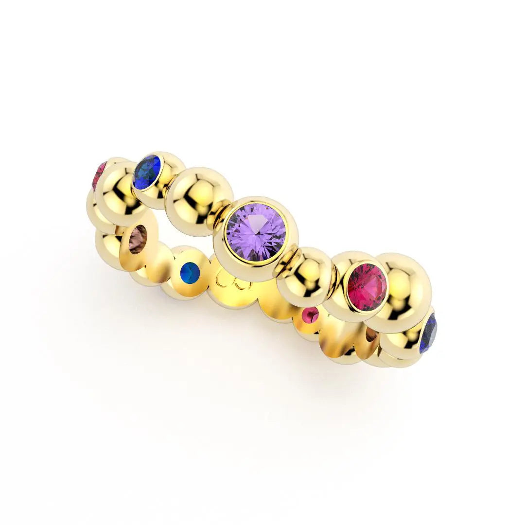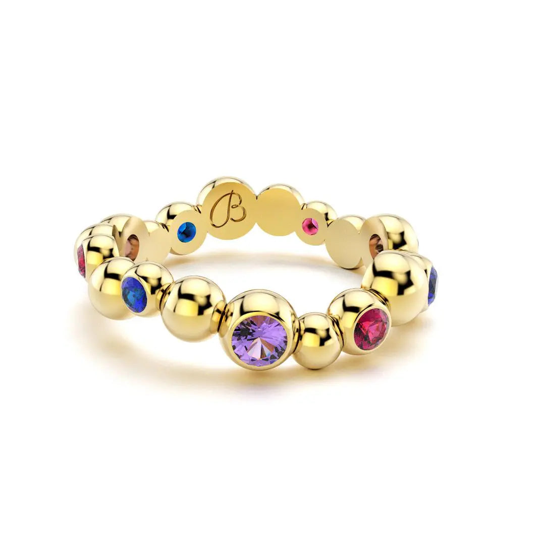 Bague Volga en or jaune 18 carats avec Saphirs violets, bleus et Rubis