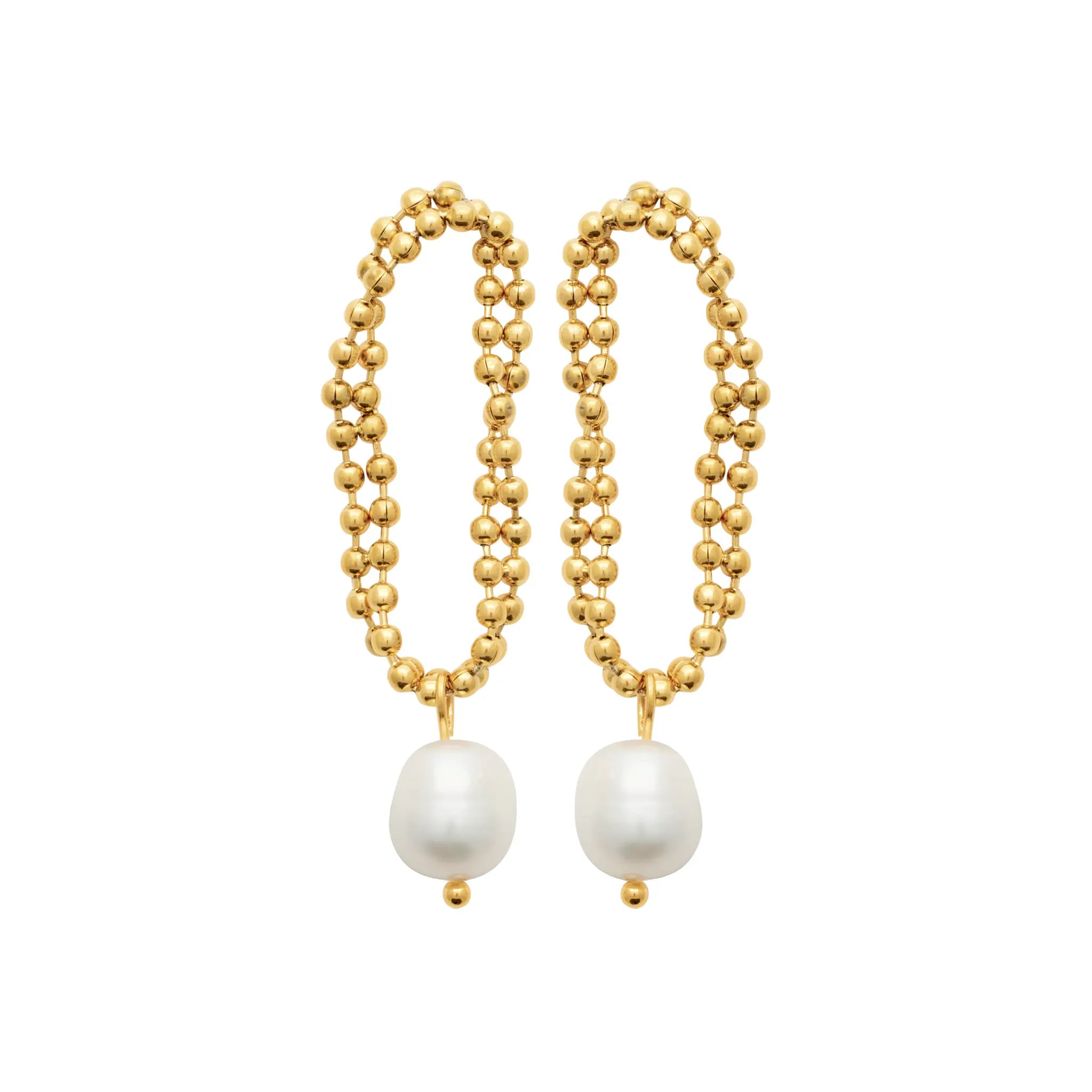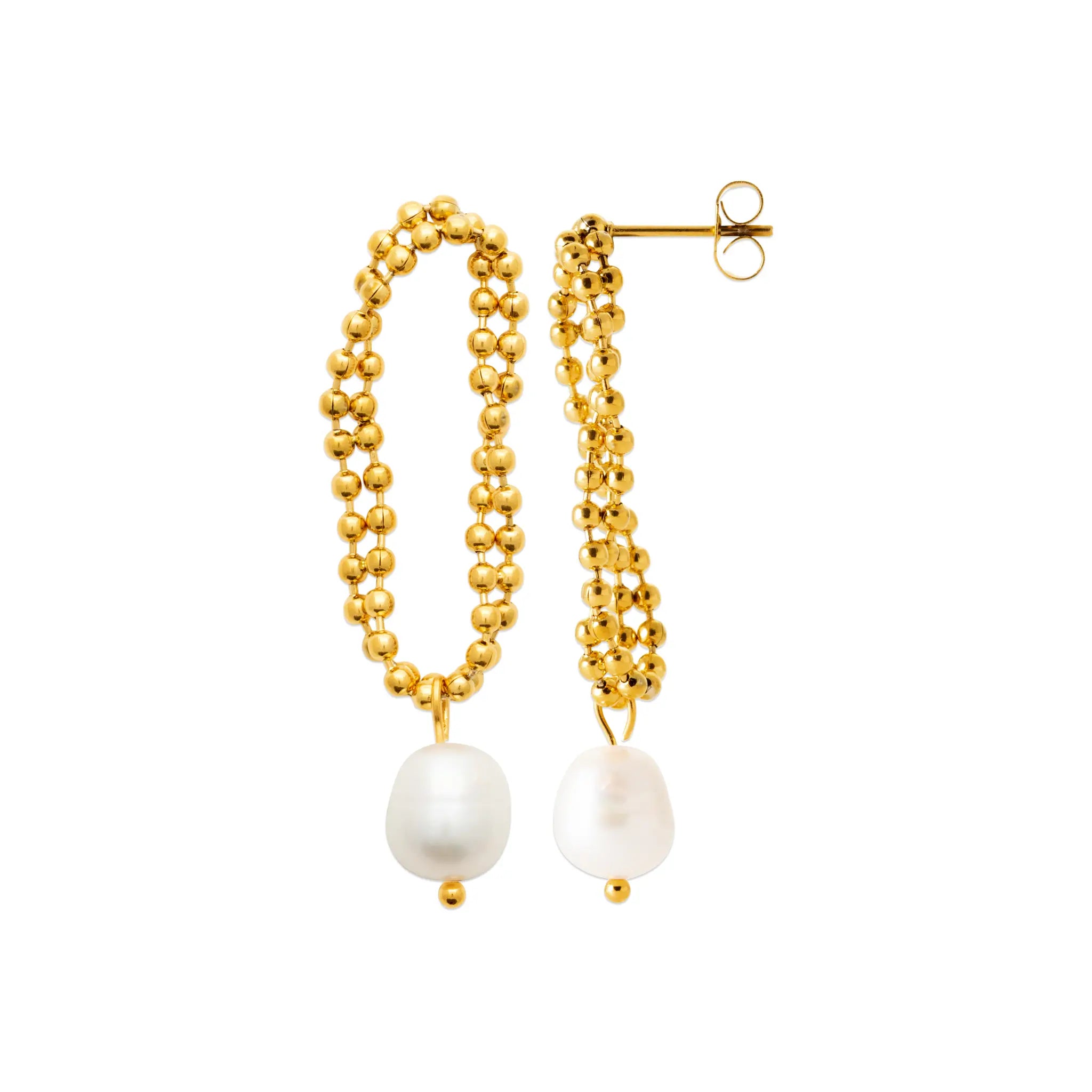Boucles d’Oreilles Perlées et Goutte Nacrée en PVD Doré – L’Éclat Suspendu