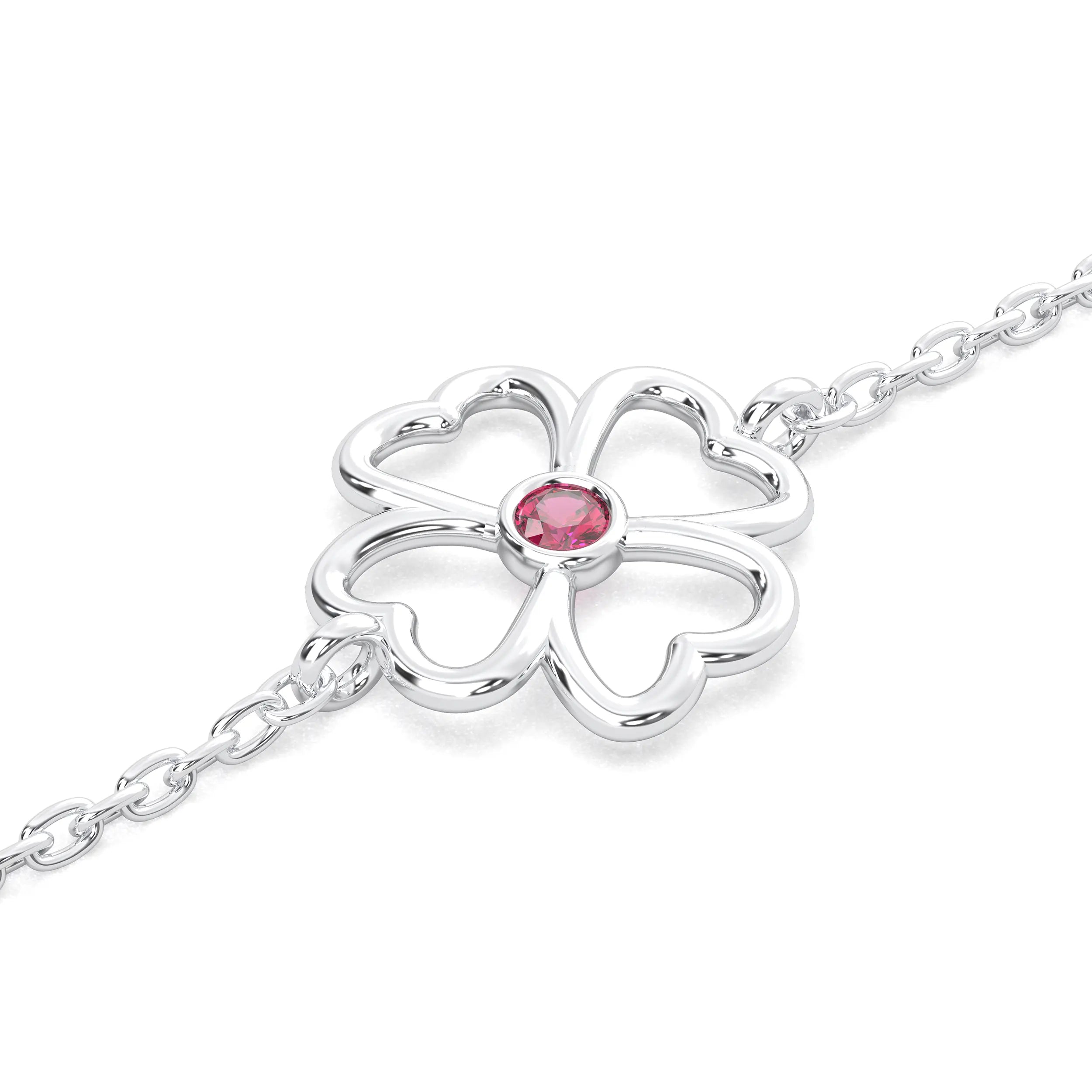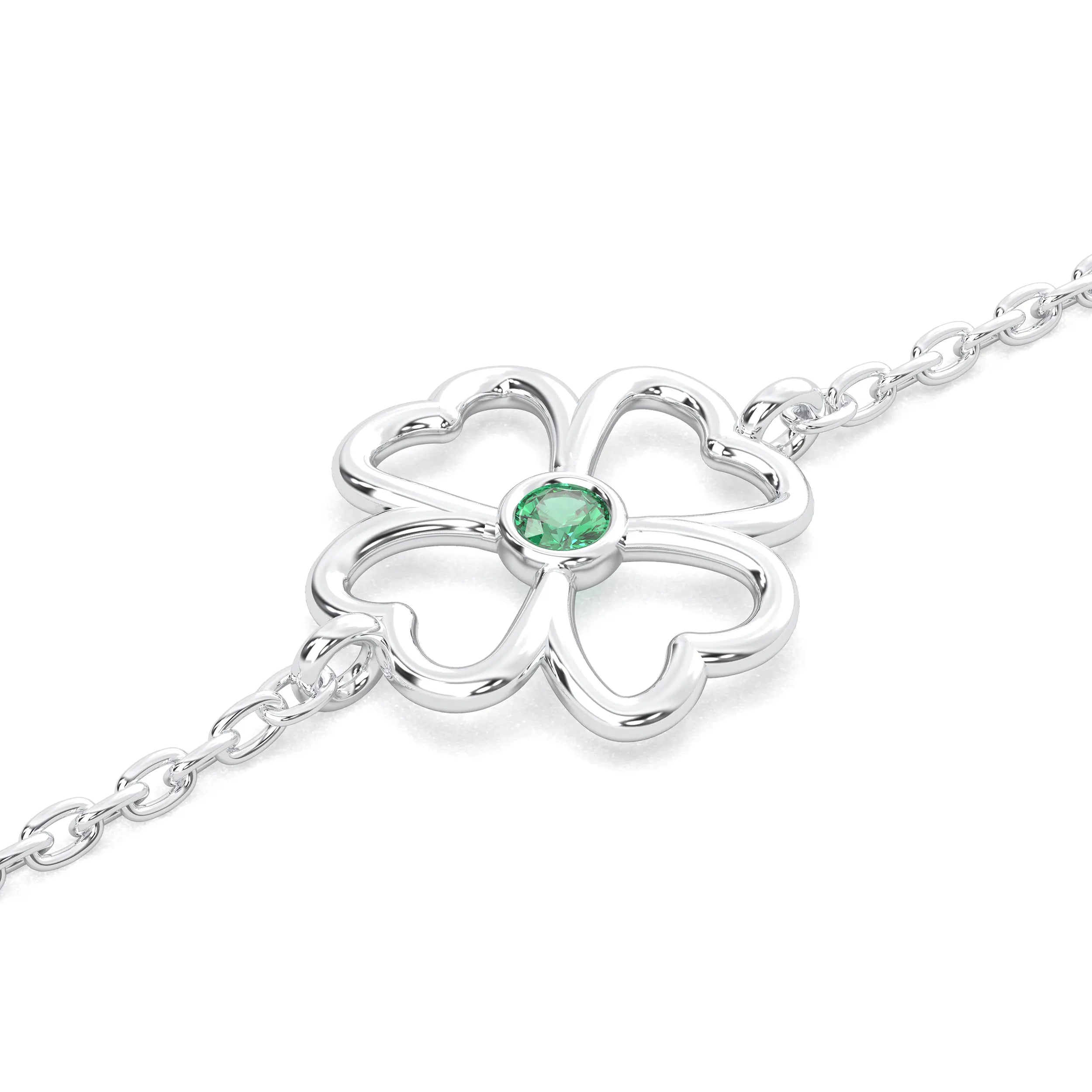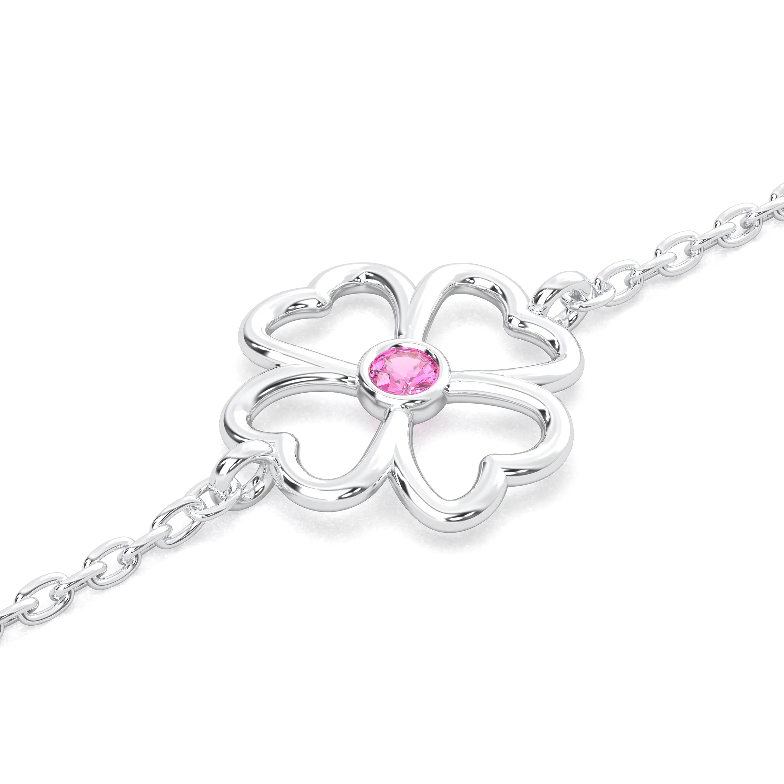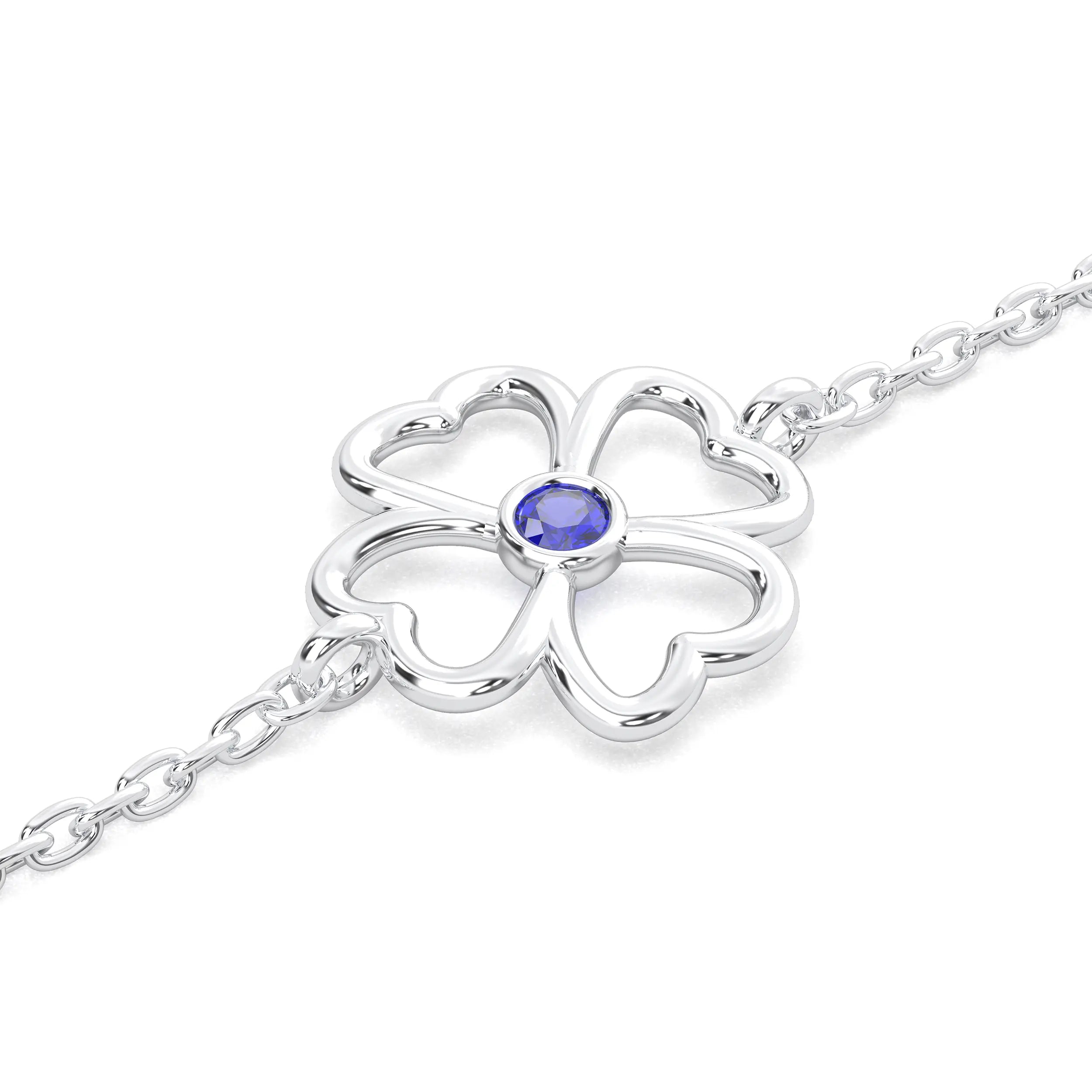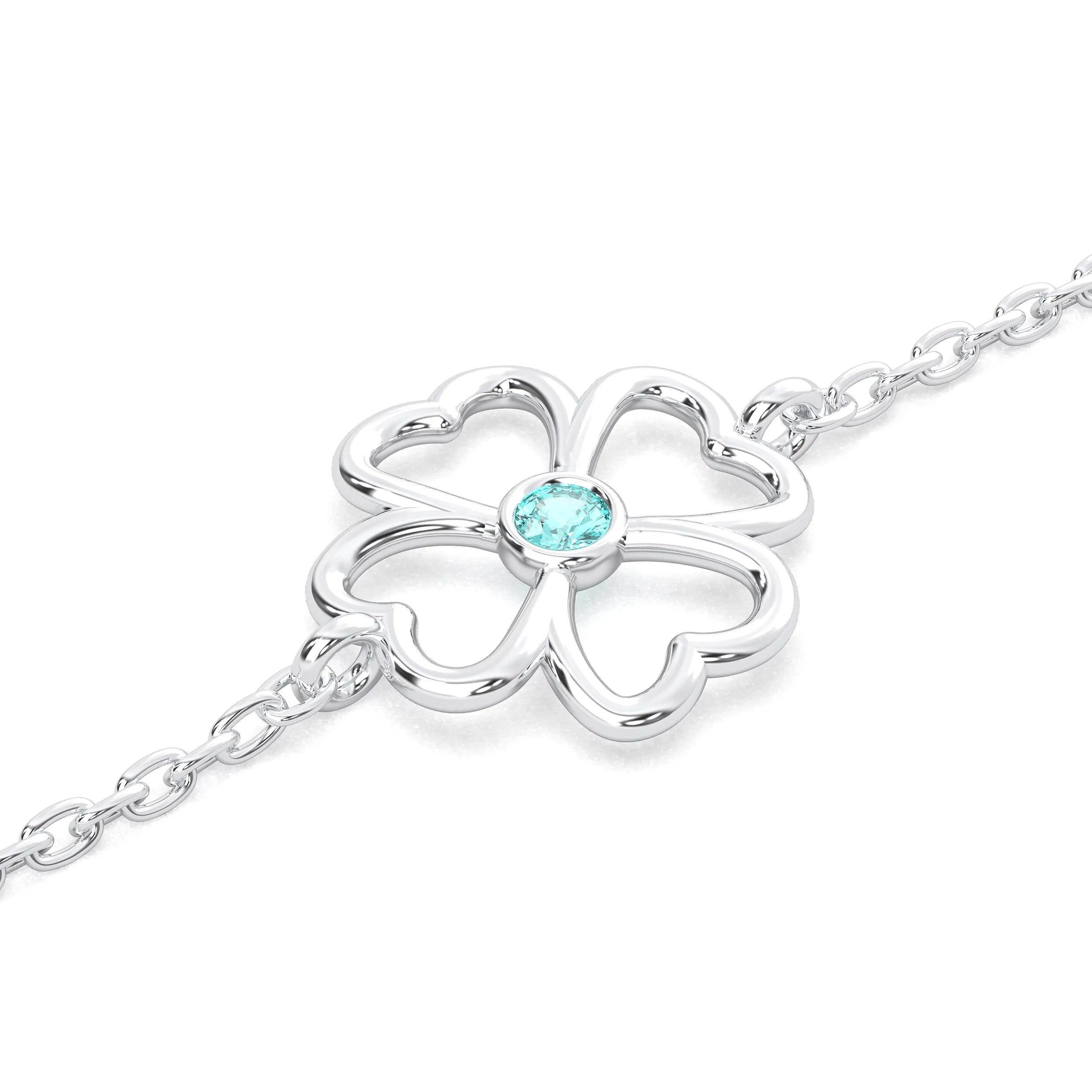 Bracelet Trèfle 4 Cœurs Or Blanc 18 Carats – Pierre Précieuse au Choix
