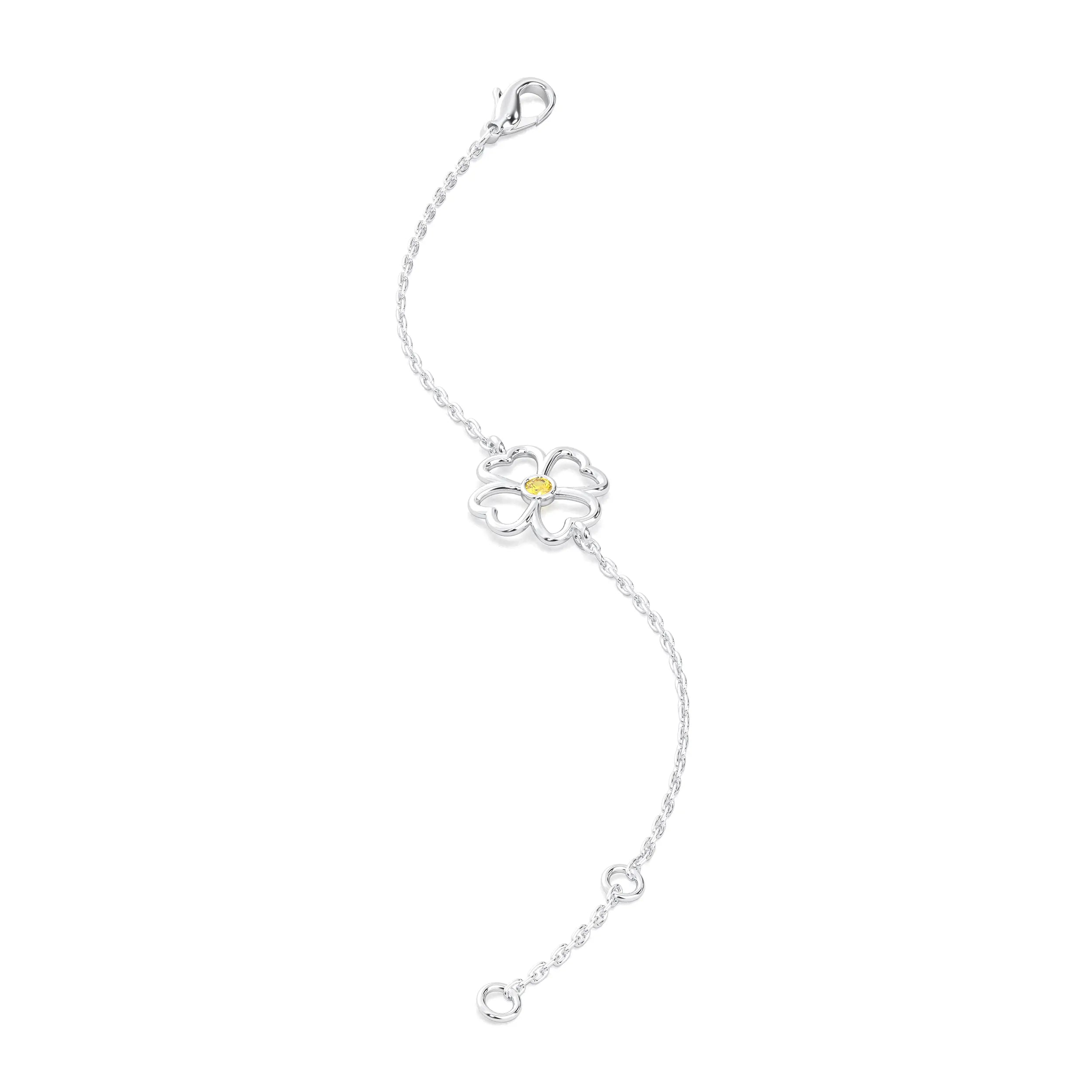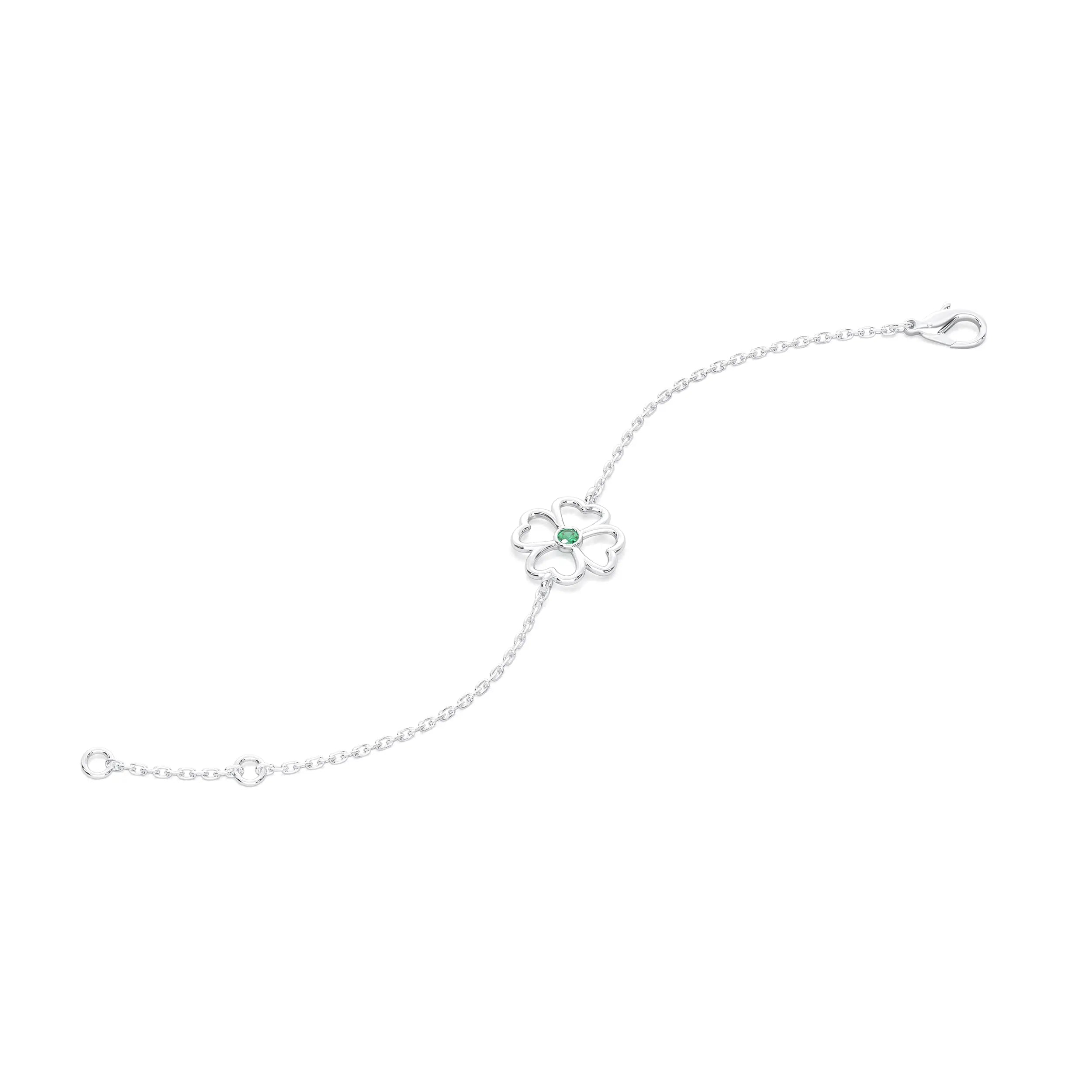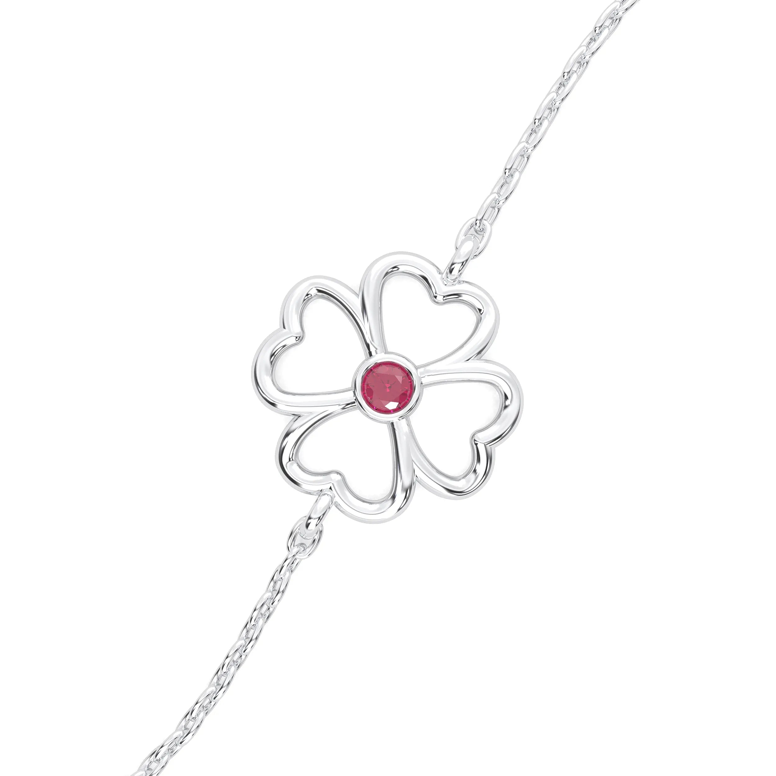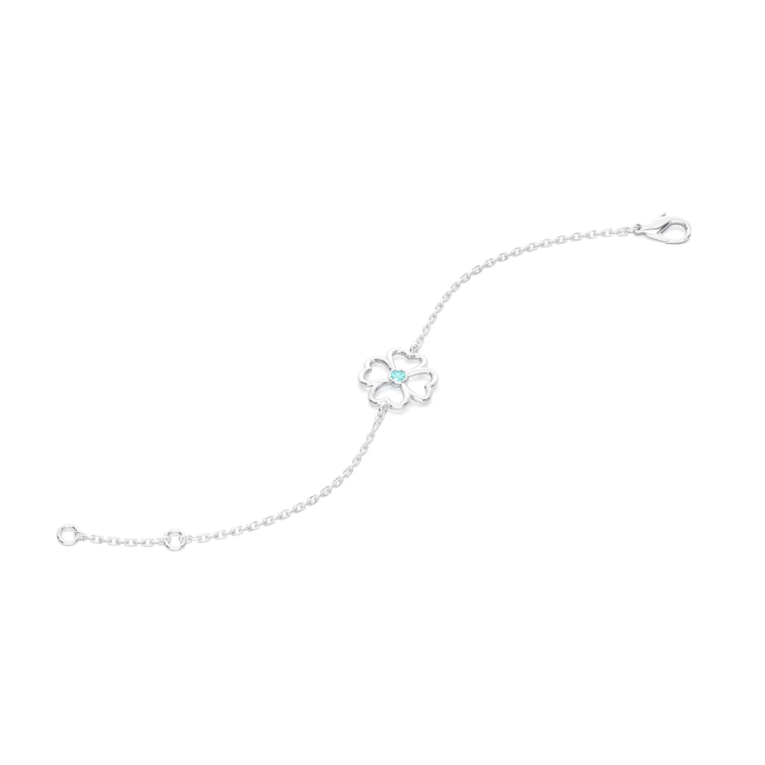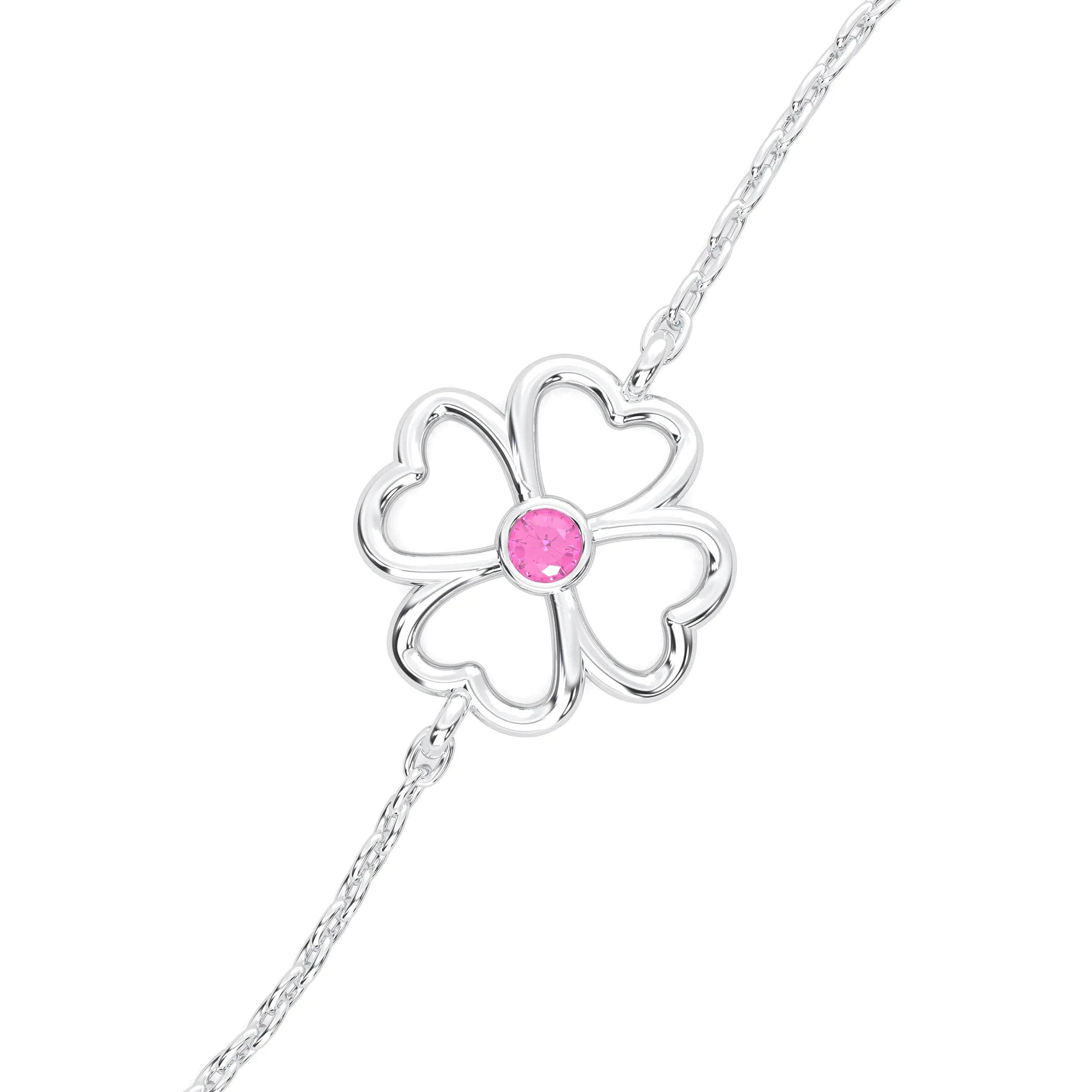 Bracelet Trèfle 4 Cœurs Or Blanc 18 Carats – Pierre Précieuse au Choix