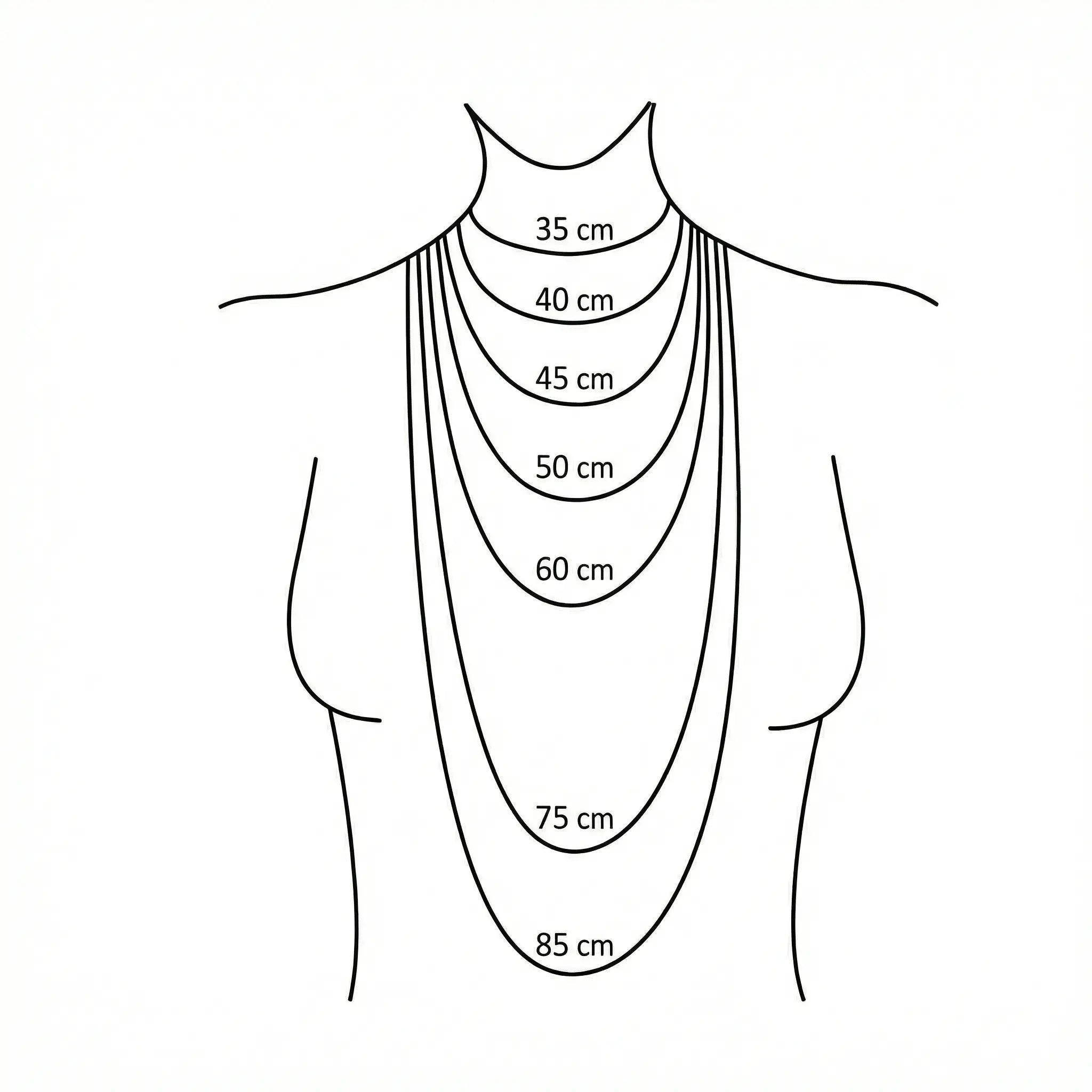 Le ras de cou (30 à 33 centimètres) offre une étreinte précise à la base de votre gorge. C’est le parti pris d’une femme à l’allure résolument affirmée. Le choker, quant à lui (35 à 41 centimètres), vient effleurer vos clavicules. Cette dimension suspend l’éclat de la matière précieuse juste au-dessus de votre décolleté, soulignant la finesse de votre buste avec une délicatesse absolue.