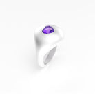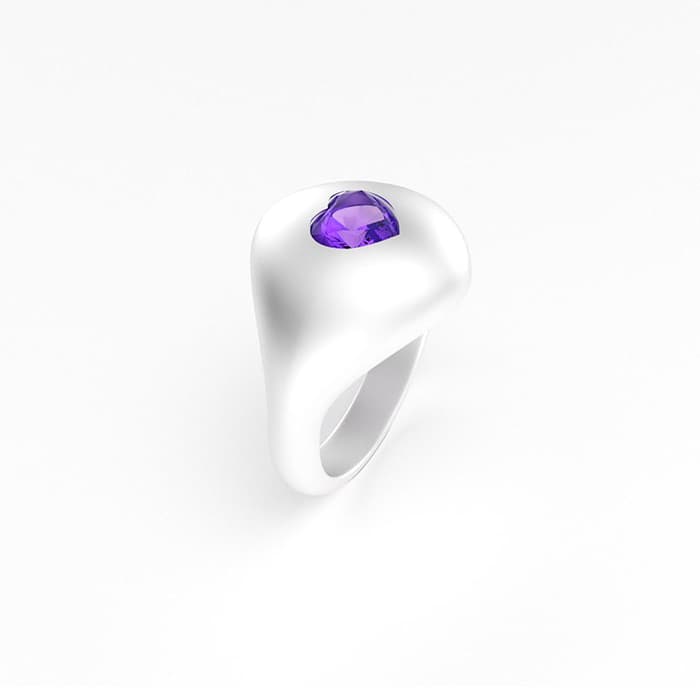 Cette bague aux formes arrondies en argent est ornée d’une pierre semi précieuses en forme de cœur. La pierre mesure en moyenne 6 mm.