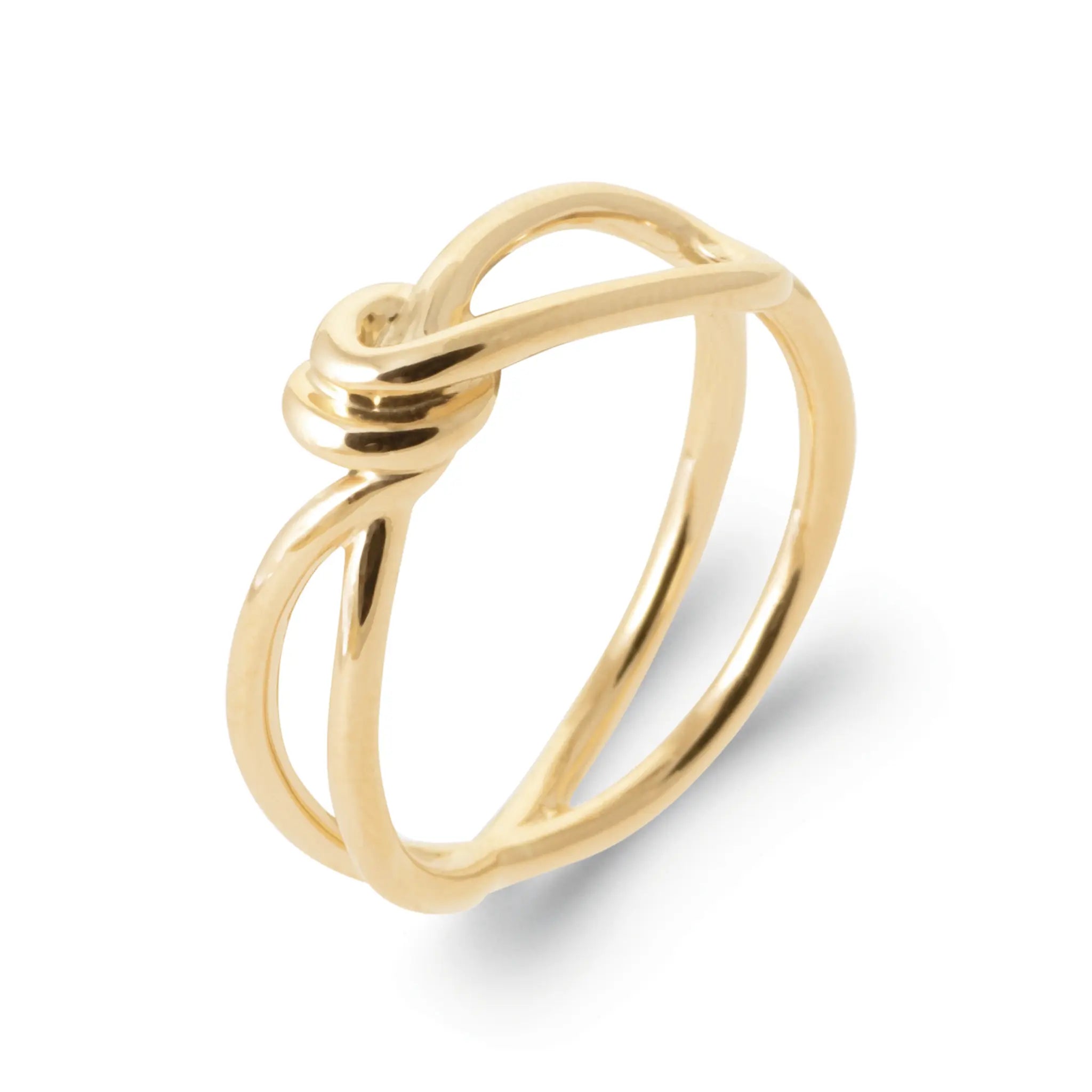 Épurée et délicate, cette bague en plaqué or met en valeur votre élégance naturelle. Son design minimaliste présente un nœud subtilement formé par deux fines branches dorées, symbole d’attachement et d'harmonie. Sa simplicité fait d'elle une alliée parfaite du quotidien, idéale pour compléter avec finesse chacune de vos tenues.