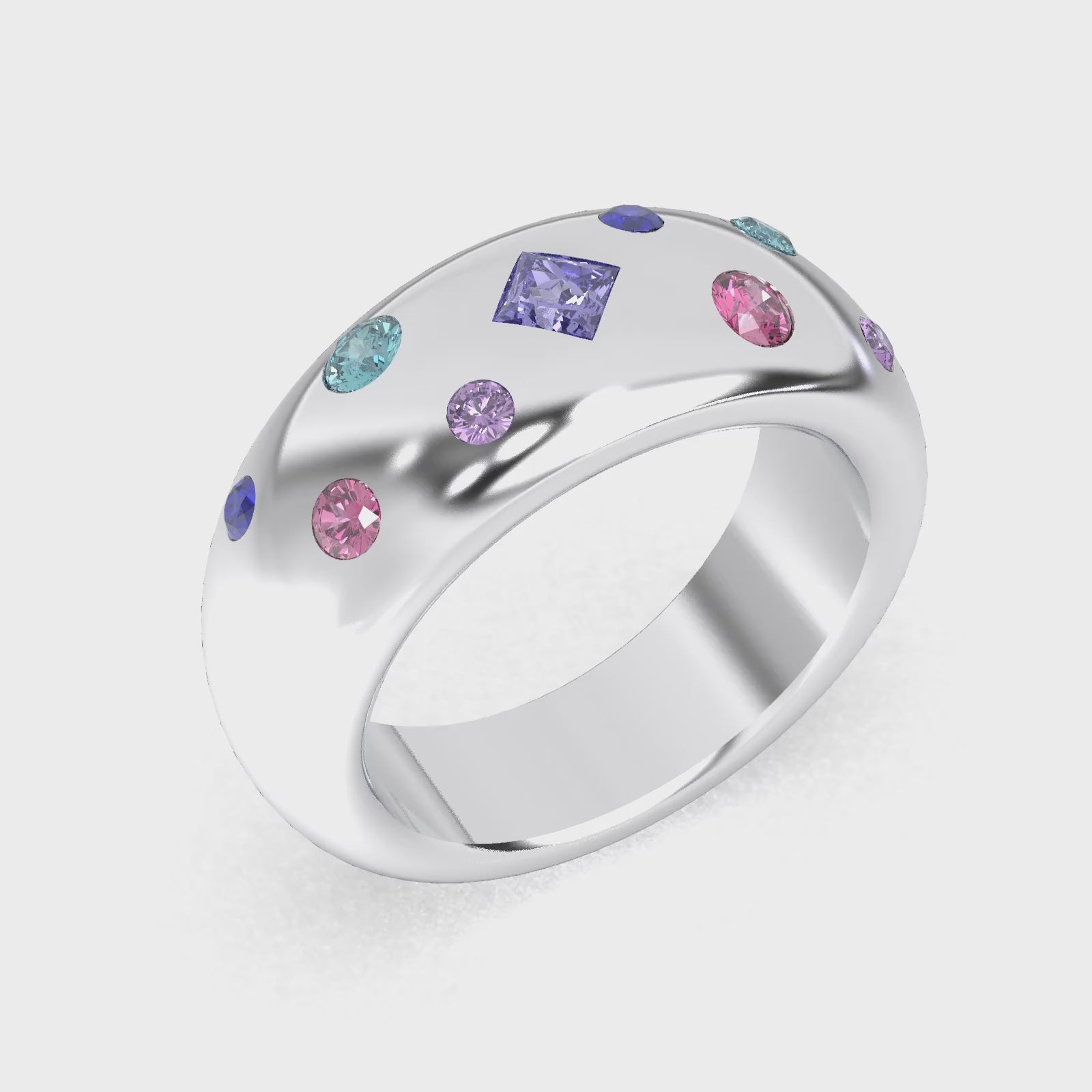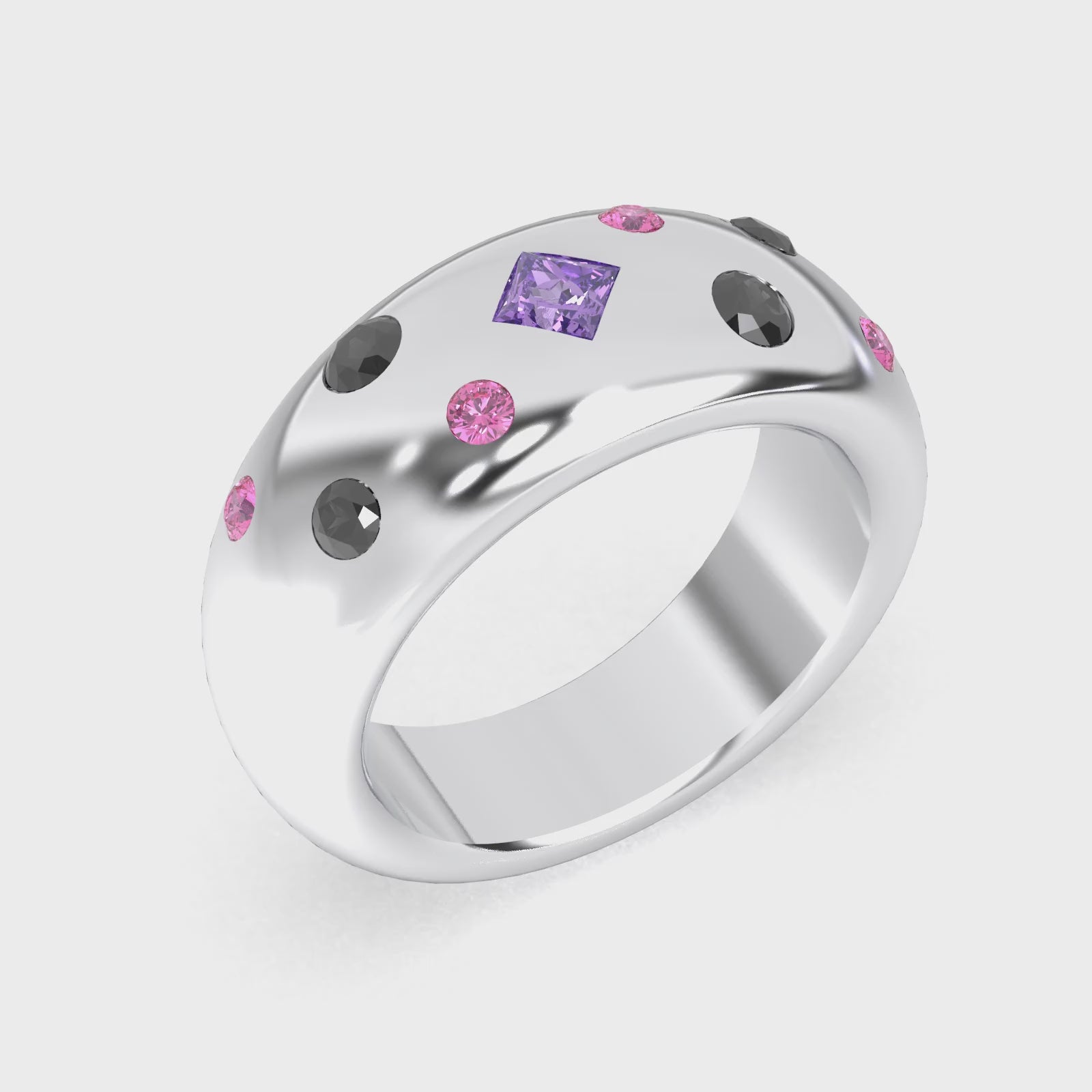 Bague Sabrina Argent 950 massif avec pierre centrale carrée – Pierres Fines et Précieuses au Choix