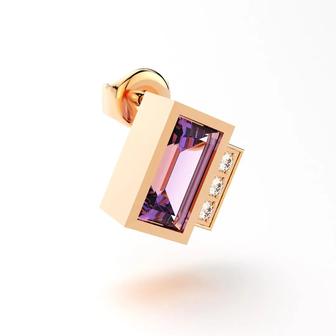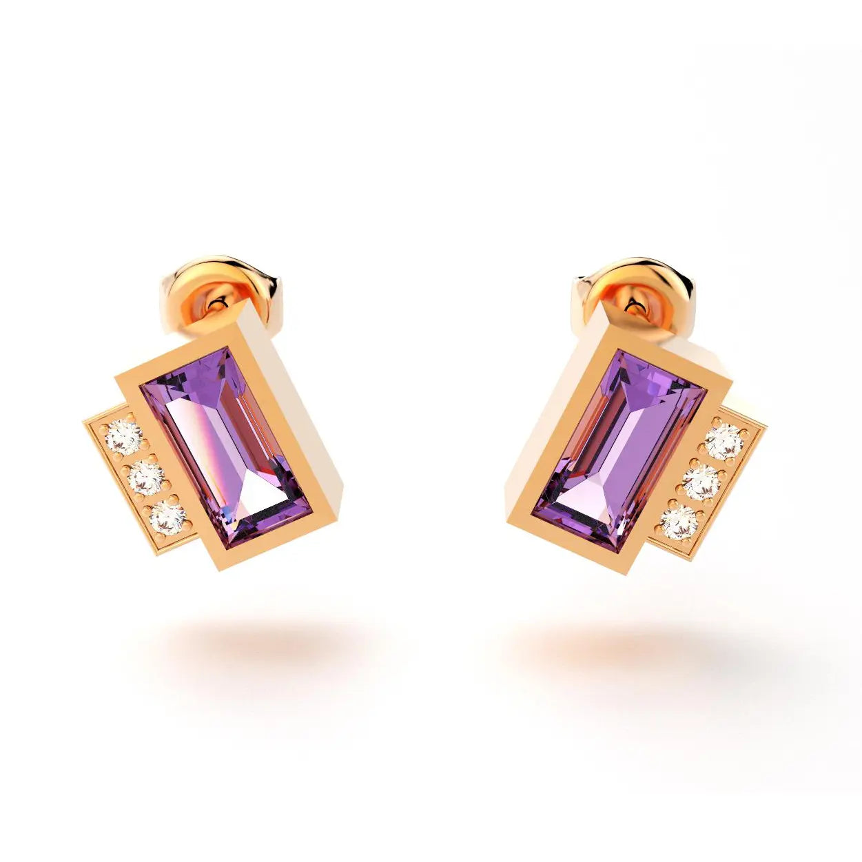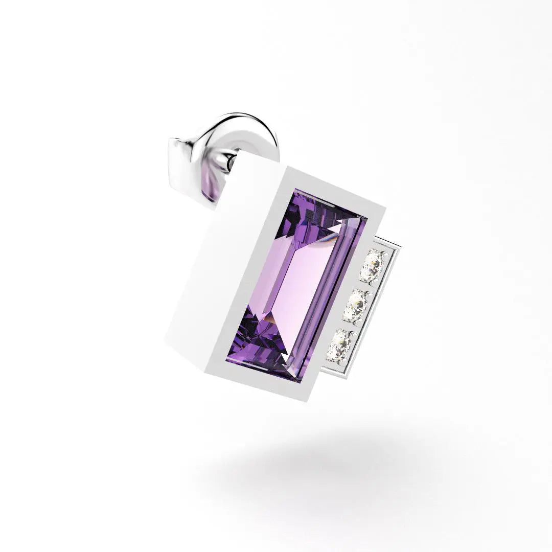 Ces boucles d'oreilles Art Déco, conçues pour sublimer votre style, vous enveloppent d'une aura de sophistication. Des lignes épurées et géométriques, inspirées du mouvement Art Déco, s'harmonisent parfaitement avec une magnifique Améthyste violette, taillée en baguette de 4 x 8 mm, qui illumine votre visage d'une aura précieuse. Le choix entre l'or jaune, rose ou blanc vous permet de personnaliser votre style et de créer un look unique.