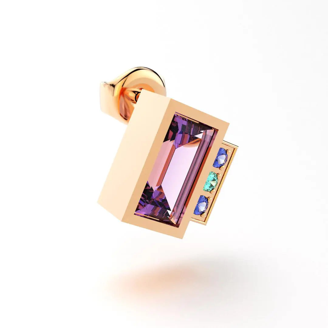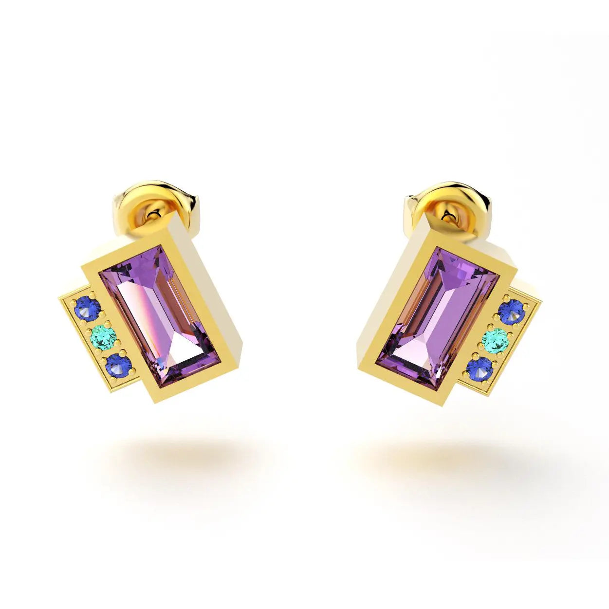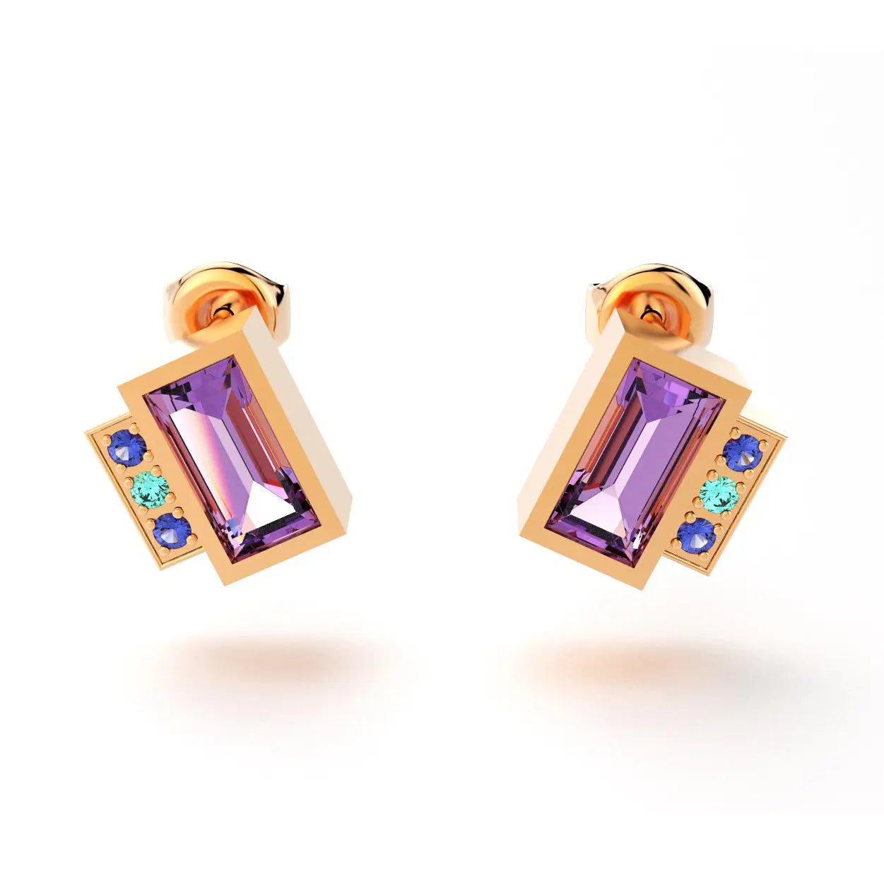 Ces boucles d'oreilles Art Déco, conçues pour sublimer votre style, vous enveloppent d'une aura de sophistication. Des lignes épurées et géométriques, inspirées du mouvement Art Déco, s'harmonisent parfaitement avec une magnifique Améthyste violette, taillée en baguette de 4 x 8 mm, qui illumine votre visage d'une aura précieuse. Le choix entre l'or jaune, rose ou blanc vous permet de personnaliser votre style et de créer un look unique.