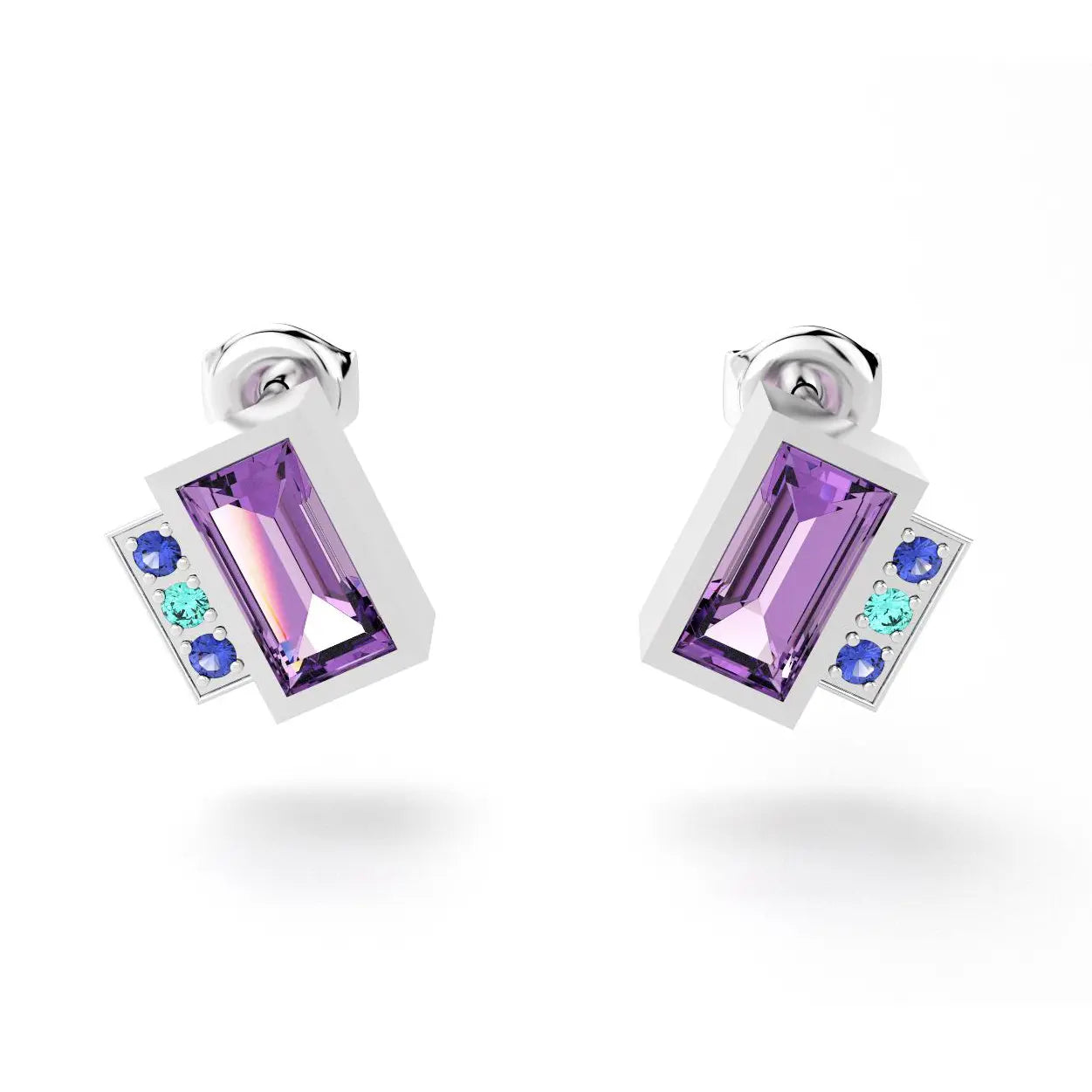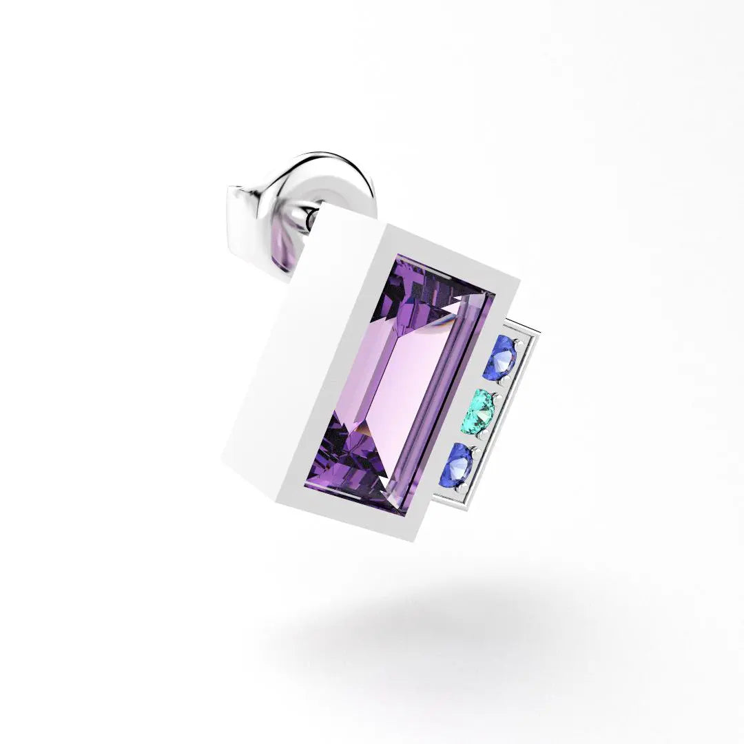 Pour un éclat incomparable, trois diamants ou tourmalines paraiba et saphirs bleus, symboles d'éternité et de pureté, sont délicatement sertis autour de l'Améthyste, ajoutant une touche de brillance et de finesse à ces boucles d'oreilles exceptionnelles.